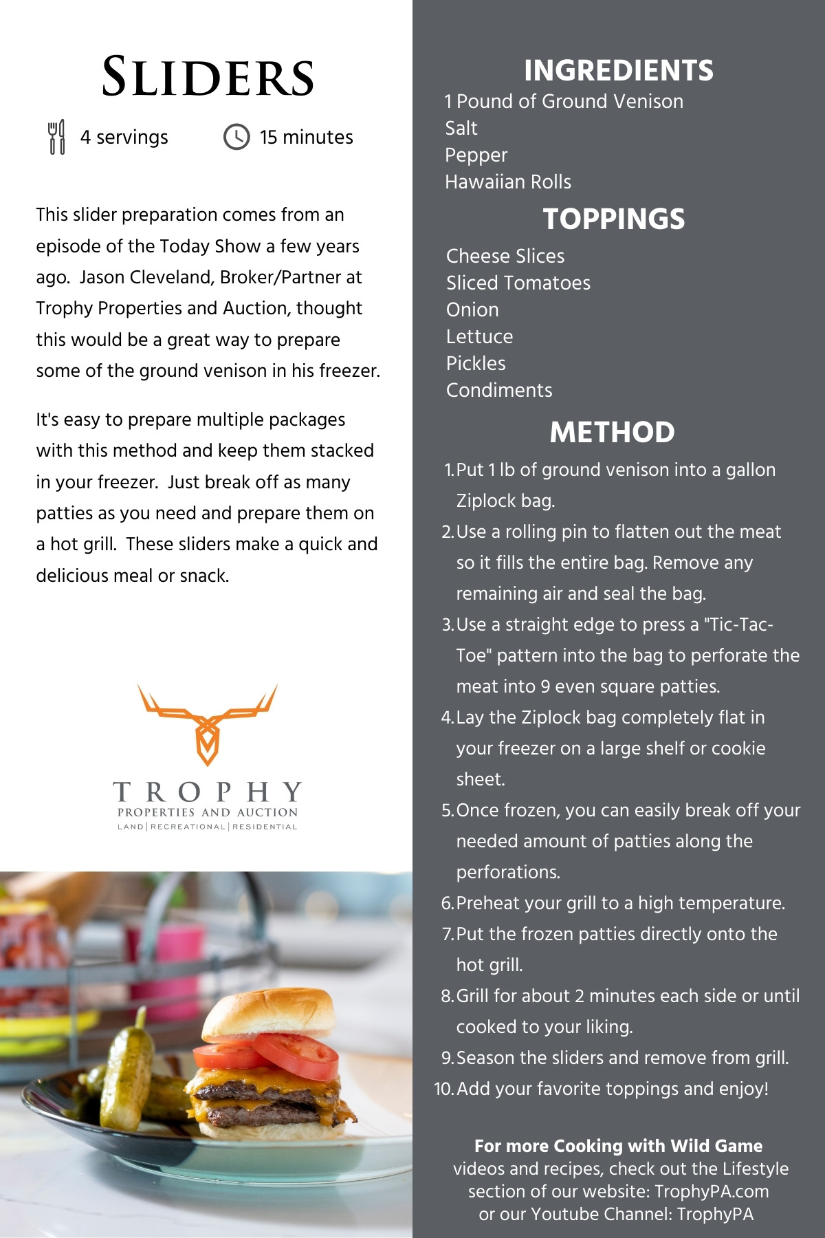 TPA Broker/Partner Jason Cleveland shows us how to make the best venison sliders/burgers! This easy preparation will save you cooking time and freezer space - and can be done with any ground wild game or ground beef.