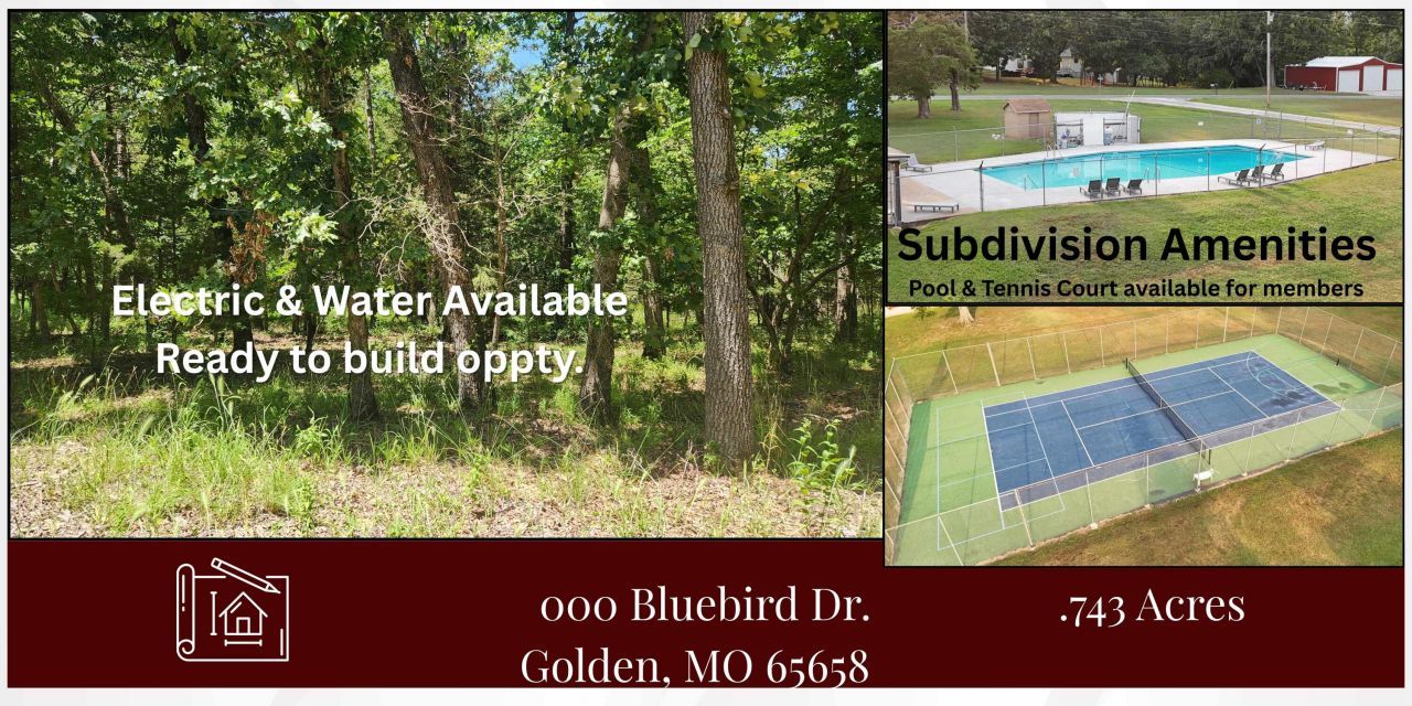 Ideal canvas for your dream home. This property near Table Rock Lake has everything set up for your next cabin, vacation home, or full-time residence. Enjoy quick access to the lake and community amenities including a boat launch, swimming pool, tennis courts, and clubhouse--all designed for easy living and year-round fun.The lot comes ready with water and electric accessibility, saving you time and money on setup. You'll appreciate the smooth, paved roads and quiet, golf cart-friendly neighborhood, perfect for a relaxed lake lifestyle. Naturally wooded setting, this property offers both privacy and a scenic backdrop for your dream build. Buy now, build now...