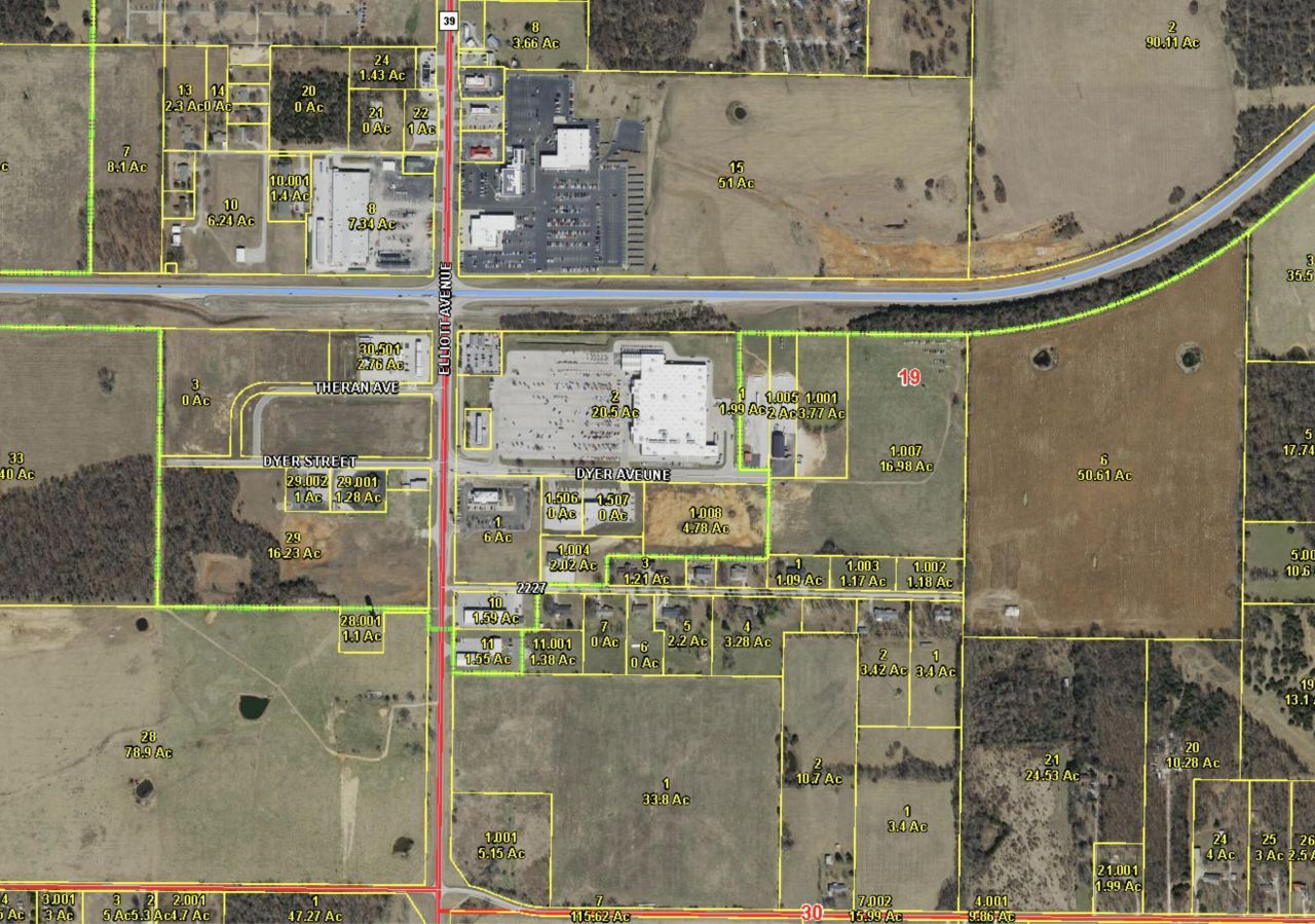 Seize a rare 16.98-acre development opportunity at the end of Dyer Avenue, Aurora, MO, priced at $850,000?well below comparable commercially zoned lots nearby. Zoned Rural/Agricultural with strong commercial rezoning potential, this expansive parcel boasts 453 feet of prime Highway 60 frontage at the high-traffic Hwy 60/Hwy 39 intersection, with ~15,000-20,000 vehicles daily (MoDOT). Ideally located steps from the Walmart Supercenter, it's perfect for rural retail, farm supply, or unique businesses Aurora lacks. City water, sewer, and electric are available at the lot's entry, and a utility easement leaves ample room for a commercial building, supported by an existing survey provided to buyers. Just 3.5 miles from Jerry Sumners Sr. Aurora Municipal Airport, this site offers regional accessibility. A quick left from Walmart leads to this versatile parcel, ready for your vision. Don't miss this competitively priced gem in Aurora's growing commercial corridor!