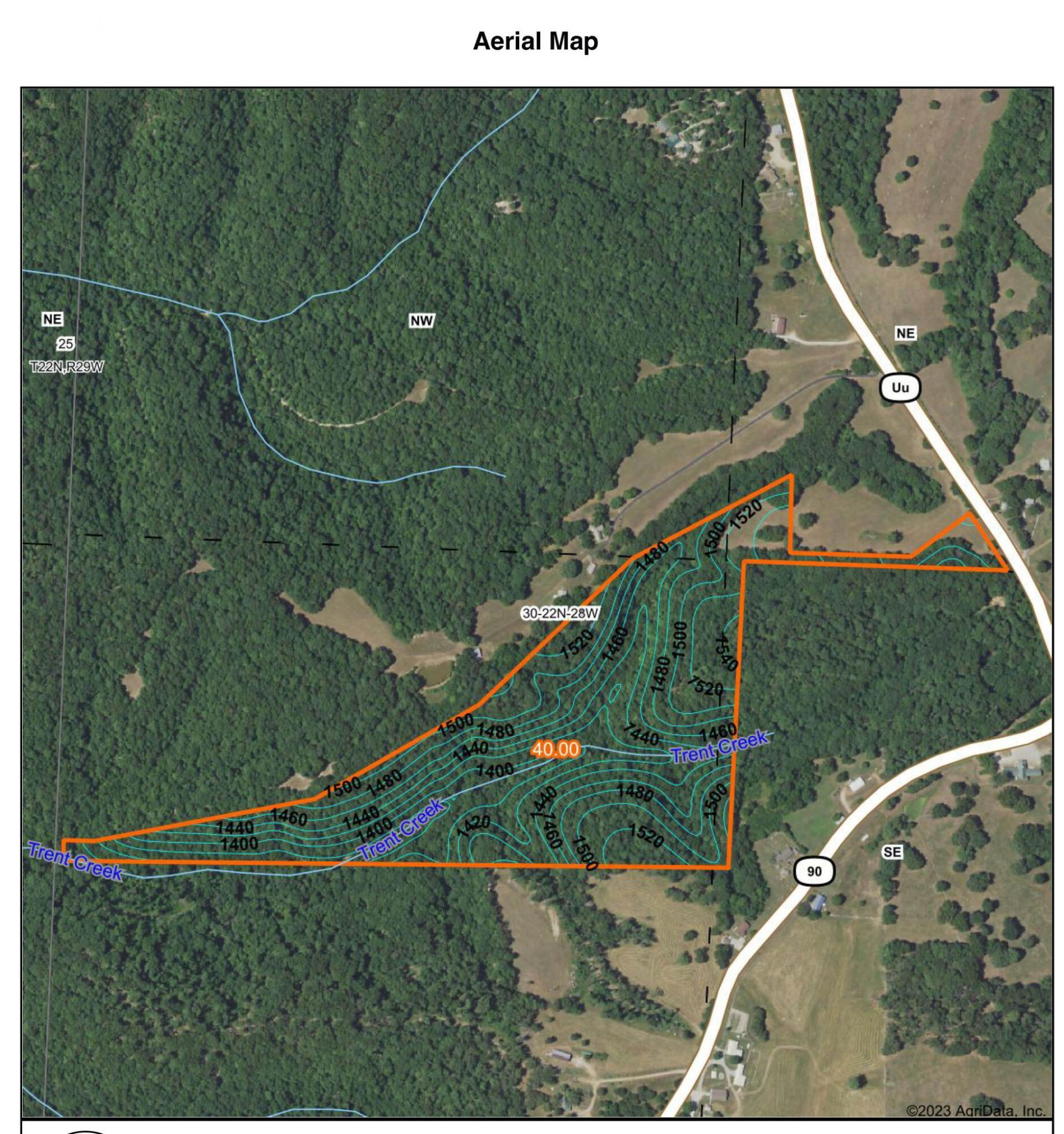 Take a good look at this surveyed 40 acre parcel just west of Washburn, MO in western Barry County. With blacktop road access via Highway UU right to the driveway entrance, it's easy and convenient to get to. As you turn in from the highway, an owned lane leads from the highway to a secluded meadow that would be the perfect setting for a secluded home or weekend cabin, and with rural water, electric service, and fiber internet available at the highway, you'll have your place up and going in no time at all. Turning the corner past the meadow, you'll enter some classic Ozarks timber, full of towering red & white oaks, hickories, dogwoods, and other hardwood species. The back part of this tract is rugged and secluded - two key factors in attracting and holding good numbers of game. Mature whitetail bucks often cruise the timber, offering a chance to harvest some quality protein and fond memories. In addition to the white-tailed deer and turkeys that frequent the property, neighbors have also observed black bears. As Missouri's bear population grows, you might have the chance to notch your tag on a Show-Me State bruin as well. A small seasonal stream with several small springs meanders through nearly the entire length of the parcel. Several trails traverse the hills and valleys, offering access throughout the parcel and a travel network for you and the game you'll pursue. And in addition to the incredible Ozarks scenery found in every direction, Flag Spring Conservation Area is located just a few miles distant, offering >4000 acres of public land and plenty of opportunity for hunting, hiking, shooting, and riding. This property offers the buyer everything that the Ozarks is known for, all in a package that's also close to Roaring River State Park, Table Rock Lake, and northwest Arkansas.