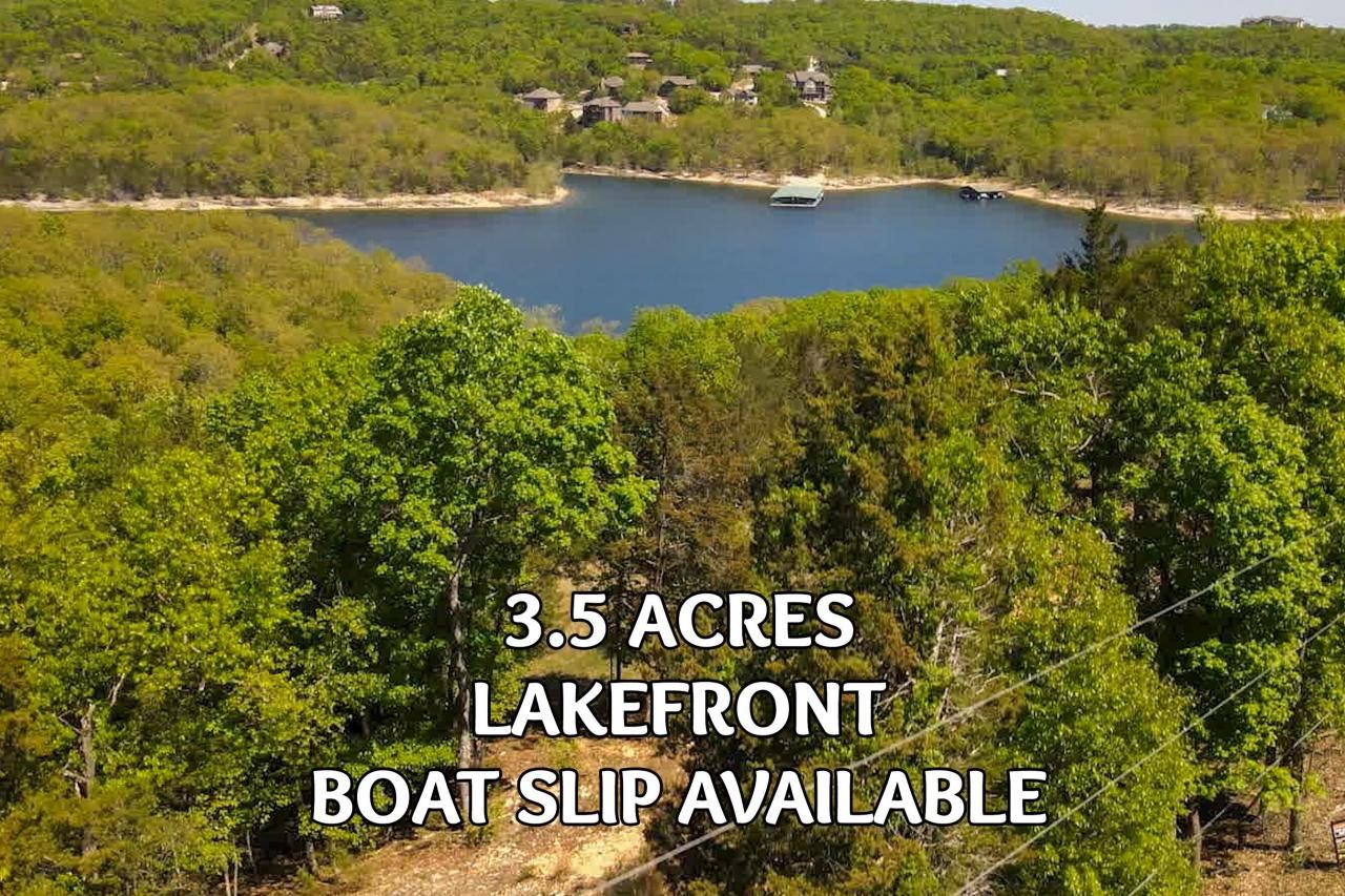 Lakefront 3.5-acre lot with lake view and boat slip available for extra. The lot features a moderate slope that allows for walkout basement home and walk-down access to the shoreline of beautiful Table Rock Lake. Plus, it's located next door to Lake Forest Hills subdivision where million dollar plus homes are being built or have recently been completed. Parcel is zoned RR-1 by Stone County Planning and Zoning but there are no other restrictions. Several boat slip options are available nearby and located off Waterfield Dr and Scottsdale Circle. Great convenient location just 4 miles from Business 13 and Branson West shopping. It's time to take the next step toward building your dream lake place. Check this out.
