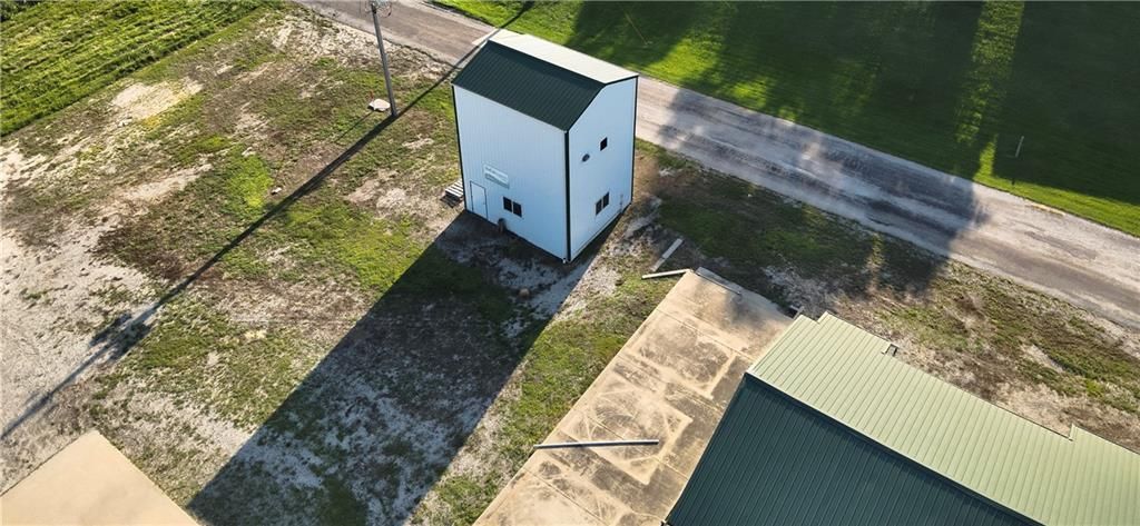 Great Opportunity! Possibilities are endless! Farmers needing Machine storage / Grain Storage 1200 Sq Ft Heated and Cooled office building plus 900 sq. ft. Meeting room. 7200sqft Ag Chemical/ Liquid Fertilizer Warehouse (Easily converted to Machine storage.) water, electrical, overhead doors with Attached:5400 Sqft. Quonset with dock, 120,000 bu. Grain Storage 60ft dia., Shop / Equipment storage: overhead doors, workbench, electrical, air compressor, heat
