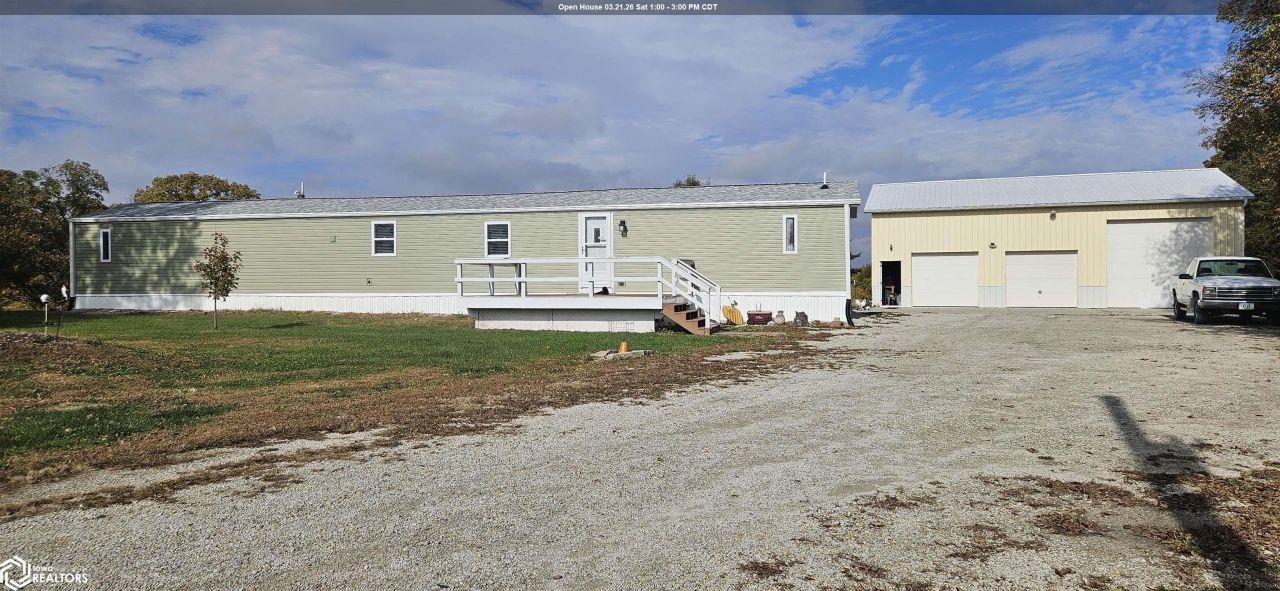 Well-Cared-For 3 Bedroom Home on Nearly 2 Acres ? Prime Pavement Location! Discover peaceful country living with the convenience of pavement access! This well-maintained 3 bedroom, 2 bath home sits on just under 2 beautiful acres, offering plenty of space for animals, gardening, hobbies, or simply enjoying the outdoors. Inside, you'll find a warm and welcoming layout with comfortable living spaces and a home that's been thoughtfully cared for. Step outside to mature trees, open yard space, and scenic country views that make every sunrise and sunset feel special. Car lovers, hobbyists, or anyone needing extra space will LOVE the large 3-stall garage/shop ? complete with automatic doors and plenty of room for vehicles, equipment, or projects. As an added bonus, the garage includes a concrete tornado shelter, providing peace of mind and safety during Iowa weather. Key Features: 3 bedrooms, 2 bathrooms Nearly 2 acres of land Located on pavement ? easy year-round access Large 3-stall garage/shop with automatic doors Concrete tornado shelter in garage Beautiful mature trees & spacious yard Ideal for animals, gardening, or hobby space If you've been dreaming of country comfort with modern convenience, room to grow, and added safety features ? this property is a must-see!