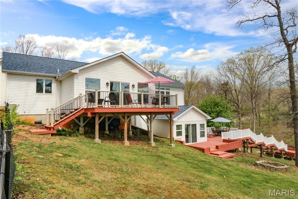 Looking for lake life? Welcome Home! Beautiful, partial brick 3-bedroom 3-bath ranch style home on Lac Shayne in Terre Du Lac. Home has an open floor plan with vaulted ceilings, wood floors, living room with a fireplace, spacious kitchen with ample cabinets including dining room area that walks out to one of the two decks. Main floor master suite includes walk-in closet, whirlpool tub and separate shower. Finished walkout basement provides plenty of room to entertain and a second fireplace. Home also features main floor laundry and central vacuum system. Home has been well maintained with a newer roof and HVAC. Outside features plentiful room for entertaining, firepit and a boat dock! This home is a must see to appreciate all it has to offer. Terre Du Lac is approximately an hour south of St. Louis and offers 15 lakes, river access, dog park, park and an 18-hole golf course.