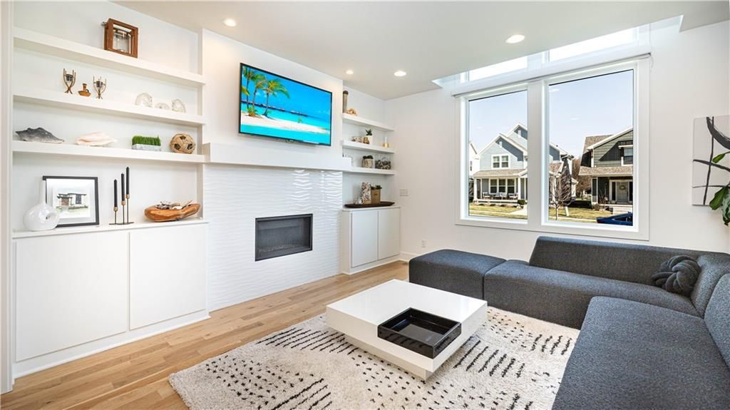Step into this stunning, modern-chic residence offering 3 bedrooms, 2 full baths, and 1 half bath, thoughtfully designed with high-end upgrades throughout. At just five years young, this home truly stands out. From the moment you enter, youre welcomed by an abundance of natural light streaming through dramatic two-story windows with motorized blinds. Wide-plank wood flooring flows seamlessly from the living room into the kitchen, creating a warm and inviting atmosphere. The living area features a striking fireplace flanked by custom built-in cabinetry, serving as a beautiful focal point. The kitchen is a chefs dream, equipped with premium Café appliances, including a six-burner gas range, dishwasher, and a high-end refrigerator (originally valued at over $3,000), all included. Additional highlights include a gooseneck faucet, under-cabinet microwave, and upgraded soft-close cabinetry. Youll also find upgraded plantation blinds. Convenience meets functionality with a main-floor laundry room that also features a built-in desk. The main-level primary suite offers a true retreat, complete with a spa-inspired bathroom showcasing a spacious tiled shower with dual showerheads and double vanities. Upstairs, youll find a versatile second living area along with two generously sized bedrooms, each with ample closet space. The full, daylight unfinished basement provides endless possibilities and is already stubbed for a future full bathroom and also boasts a water softener. Completing the home is an attached two-car garage and a fenced side yard, adding both practicality and charm. This exceptional property combines modern style, comfort, and thoughtful upgrades. This neighborhood is home to a lake, swimming pool, playground and walking trails.