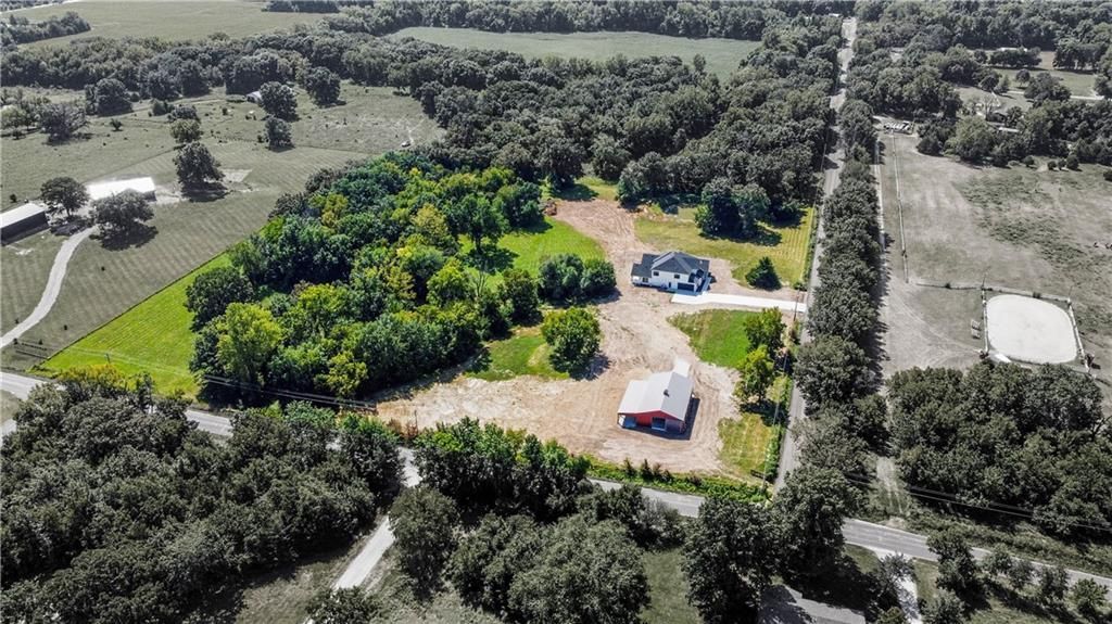 Luxury meets country living in The Westbrook by KC Custom Homes! This 1.5-story custom estate sits on 10+ rolling acres with a meandering creek and 12-ft deep pond. Featuring over 3,400 finished sq ft, the home showcases soaring 18-ft ceilings, a 40-ft wide great room, and a designer kitchen with oversized island, quartz counters, custom cabinetry, accent lighting, and a vaulted dining area. The main-level primary suite offers a spa-like bath with freestanding tub, tiled walk-in shower, and custom walk-in closet, plus a private office and designer half bath. Upstairs, 3 bedrooms each include en-suite baths and walk-in closets. Designer details throughout: exposed wood beams, tall trim, wainscoting, feature walls, curated lighting, and cedar arches with LED up-lighting. Outdoor living includes a cathedral-ceiling front porch, covered patio, and outdoor cooking area with gas/electric hookups. A new 40x50 barn offers a concrete floor, full power, two 15 sliding doors, 3 horse doors, a 15x50 lean-to, and 10 front overhang?perfect for livestock, storage, or workshop needs. Additional highlights: extra-deep garage, spray-foam insulation, sound-insulated walls, soffit lighting, in-wall Yamaha speakers, wired for generator/hot tub/security/future pond power, Tamko Titan shingles, HBW 210 warranty, and a full pet station with wash area, kennel, pet door & Dutch door. A rare opportunity to enjoy luxury living with country serenity just minutes from city conveniences.