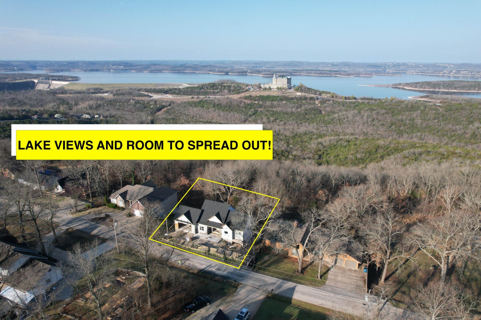 LAKE VIEWS AND ROOM TO SPREAD OUT! This beautiful home overlooking Table Rock Lake and Chateau features a versatile walkout basement ideal for a game room, extra bedrooms, or entertaining. Soon to be a REMARKABLE HOME! The home is designed for durability and quality, using materials such as James Hardie siding. Select quartz or granite countertops in your preferred color. As well as the flooring, which will be luxury vinyl and fully waterproof. You can also take advantage of the chance to select your own kitchen cabinets color and add your personal touch to the heart of the home. Enjoy a generous living space with 2 bedrooms and 2 bathrooms on the main level, plus 3 bedrooms and 2 bathrooms in the basement. Great location and no HOA! Enjoy the freedom to make the most of your home without extra restrictions. It is between SDC and Main Street 76, you'll be in a central spot away from the hustle and bustle, while Moonshine Beach is only 2 miles away. Stainless steel appliances are included: stove, dishwasher, refrigerator, and microwave, along with an irrigation system, pet bathing station and landscaping. The home comes with a one-year builder warranty, plus an HSA home warranty for an additional three years. MAKE THIS BEAUTIFUL HOME YOURS TODAY! Stay tuned for public open houses.