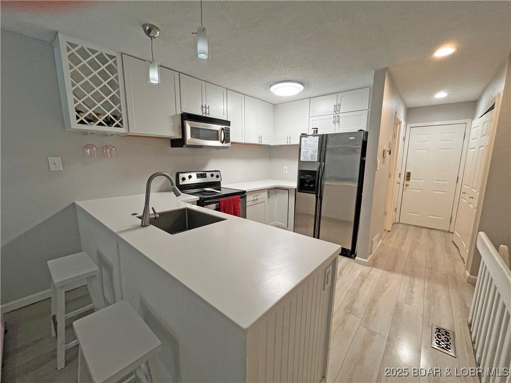 Nestled in the serene no-wake Pogue Hollow cove at the 17MM in Osage Beach, Eagle Bay condominiums are a small 24-unit community where nightly rentals are not permitted. This turnkey 2 bedroom, 2 bath townhouse-style condo has been thoroughly updated. The modern kitchen offers quartz countertops, stainless steel appliances, and plenty of cabinet space. You will appreciate being just steps from the pool and lake access from your private lakeside lower deck. Enjoy the lake and pool views from either of your balconies. Centrally located close to restaurants, shopping and golf courses.