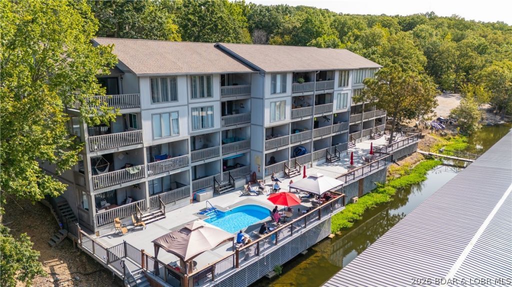 Welcome to this turn-key 2-bedroom, 2-bath lakefront condo at Lake of the Ozarks, perfectly located in Osage Beach at the 17 Mile Marker. Tucked into the calm, no-wake waters of Pogue Hollow Cove, this waterfront condo with boat slip offers the ideal mix of convenience and peaceful lake living. The unit includes a 10x24 boat slip with a lift and features new windows and sliding glass doors, a valuable recent upgrade. What truly sets this property apart is the rare combination of amenities that are getting harder to find at the lake. Enjoy boat trailer parking and a private boat ramp, making lake access simple and stress-free. Eagle Bay is also a non-rental community, creating a quieter, more private atmosphere with several full time residents. Relax at the lakeside pool overlooking the cove, or head out by water just minutes to Red Heads, Dog Days, Backwater Jack's, and Lake House 13. The quiet cove also has an on-water gas marina (MarineMax). Very low HOA dues include everything except electric! If you're looking for a Lake of the Ozarks condo with a boat slip in Osage Beach, this is a great opportunity to enjoy the lake the way it's meant to be.