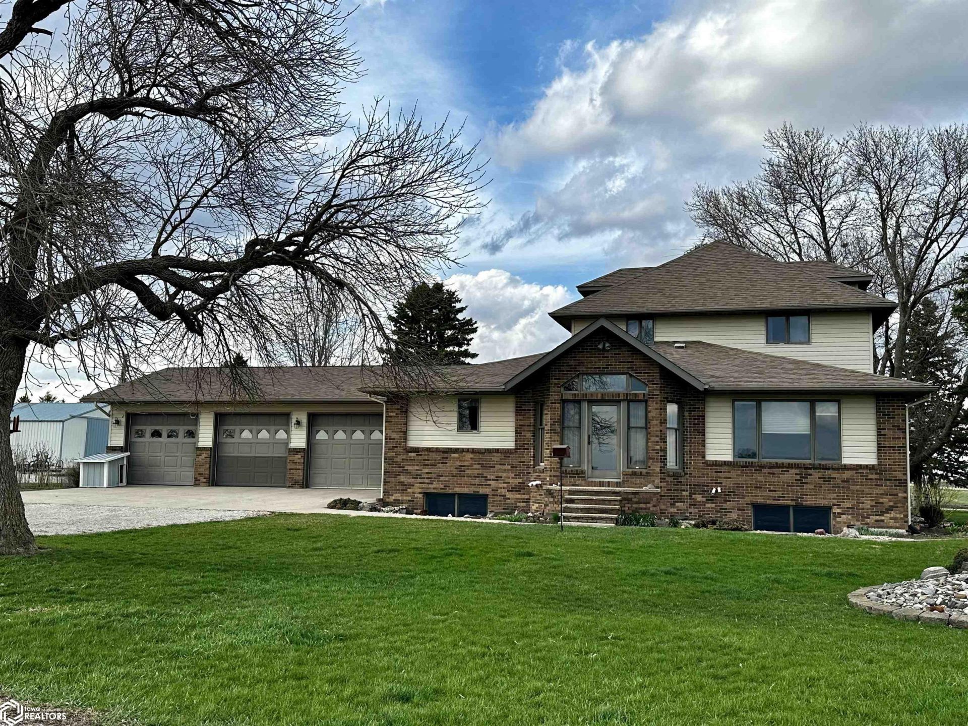 This Stunning 2 story 3 bath home on 3.83 acres just invites you in with its many perks and beautiful touches! The oversized triple attached garage is made deeper to accommodate a pickups length + a work bench. The functional but elegant kitchen is equipped with large center island & granite countertops, built in microwave & oven, & electric cooktop. The open design kitchen & dining room allows for good flow & functionality. Lots of natural light streams into the area via the stylish south entrance door, with additional side windows & transom window giving it a sunny cheerful feel. There's plenty of living space as well with a large living room & also a room designed for a media or entertainment room. French doors lead into a dedicated office area. The main level master bedroom is complete with walk in closet and bathroom & the home's second level offers 3 bedrooms and a full bathroom. The large finished portion of the basement has in floor heat plus a kitchenette & the daylight windows add natural light to the space. Plus the lower level non conforming bedroom makes for a total of 5 bedrooms! Outdoor Acreage amenities include deck, new well in 2023, automatic farm generator for peace of mind when the electricity is out, Large Morton 36 x 51 w/ concrete floor building for farm machinery or your boat, or whatever your need may be! There are 3 lg bins, plus a 10,000 bu dryer bin. This is a lovely property & is just waiting for you! New surveyed parcel-tax to be determined