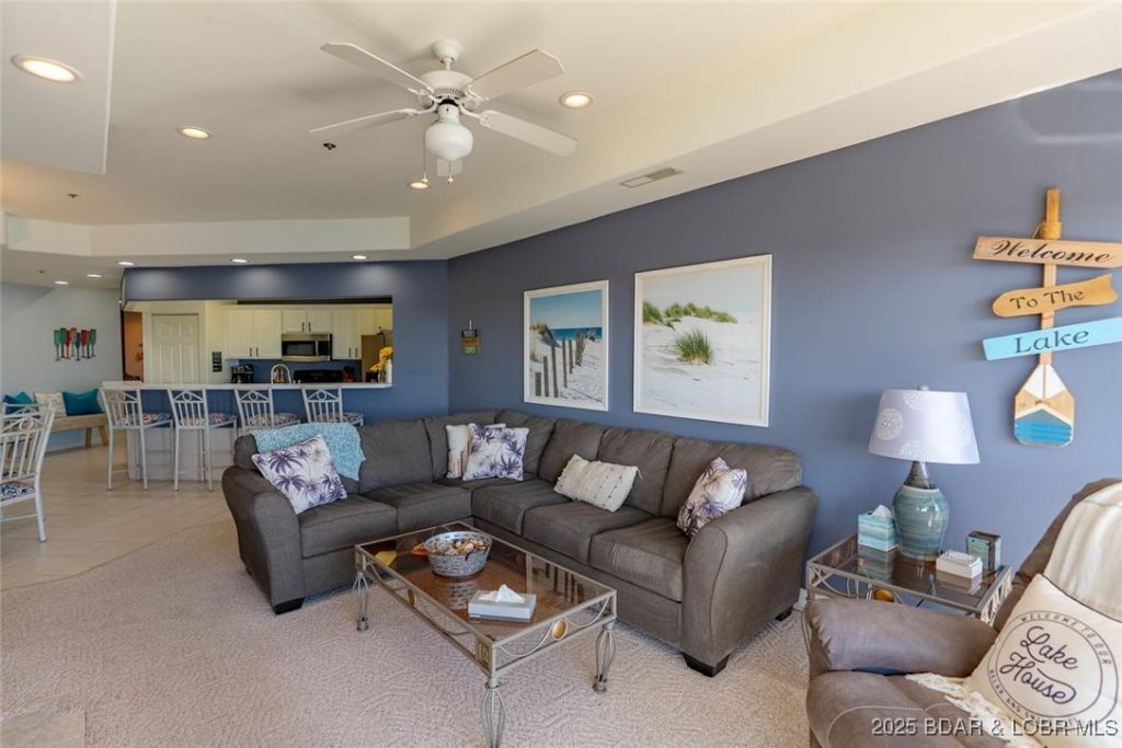 Top-floor lake view condo in Emerald Bay with a 12x32 boat slip, located in the heart of Horseshoe Bend. This fully furnished, turnkey 3-bedroom, 2-bath condo offers panoramic Main Channel views and effortless lake living. The property has been used as a short-term rental with a strong rental history. The open-concept layout features a spacious living area and bright kitchen with stainless steel appliances, breakfast bar, and ample cabinet space. The primary suite includes direct deck access, double vanity bath, and lake views. Two additional bedrooms offer flexibility for guests, family, or rental use. Enjoy the newly built cedar deck (2024) overlooking Lake of the Ozarks, ideal for morning coffee or sunset dining. This top-floor unit provides added privacy, natural light, and elevated views. Emerald Bay amenities include a newly renovated pool, tennis court with basketball hoop across from the unit, plus a second lakefront pool and clubhouse. Recent updates include HVAC (2022), refrigerator (2025), and newer roofs throughout the complex. Convenient to Bagnell Dam dining, shopping, and entertainment. Move-in ready for full-time living, weekends, or investment use.