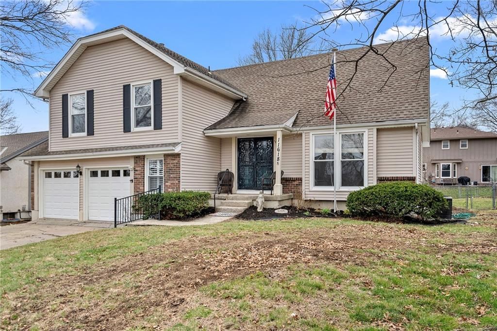 Located in the beautiful neighborhood of Red Bridge! This 4 bedroom home is bright and spacious with multiple areas to gather including the partially finished basement. The kitchen has been recently updated and overlooks the downstairs living room with a fireplace and walkout to the large back patio. A laundry room is just a few steps down from the main living room and right off the two car garage. New interior paint, a good roof, new windows, and a partially finished basement check so many items off the list here. All bedrooms have large closets! The primary bedroom has its own private bath and a 4th bedroom is located off a lofted entry great for an office or play space. Good highway access and walking distance to local restaurants and schools. Charming and ready for your finishing touches!