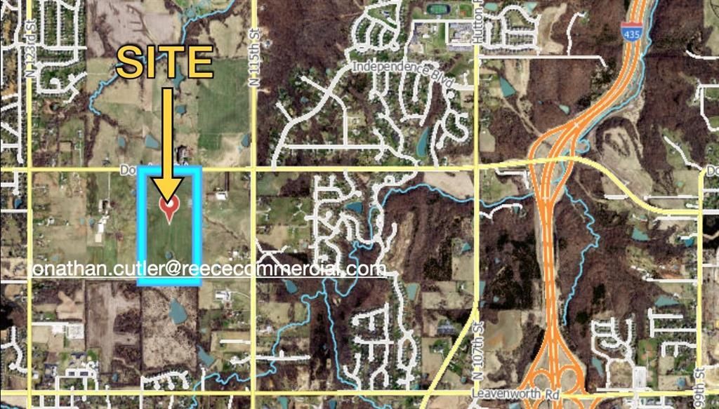 High visibility and easy access. Pristine land is ideally located for residential developers. Prime development land running between I-435 and K-7 with access off Donahoo Road exit. Master planned as Residential and Neighborhood Commercial. A few miles from Village West and the Kansas Speedway/KC Sporting venues. Minutes from WyCo Lake and Amazon Fulfillment Center.