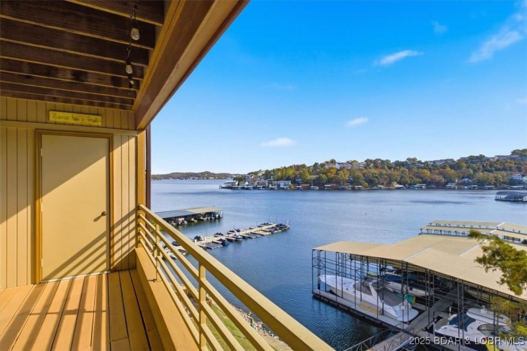 Welcome to effortless lake living at The Breakers, where breathtaking main channel views stretch for miles and every day feels like vacation. This walk-in level, turn key condo offers true convenience with no steps and reserved parking for owners. Step inside to a bright, inviting space featuring COREtec LVP flooring and floor-to-ceiling picture windows that frame the lake like a work of art. The kitchen is stylish and functional with custom cabinets, quartz countertops, stainless steel appliances, and a beverage cooler for extra space. Enjoy colorful sunrises and peaceful evenings from the spacious deck overlooking the water. This move in ready 2 bedroom, 2 bath condo includes a 12x32 boat slip with 6,000 lb hoist and a PWC slip with drive on lift, ready for lake fun. Life at The Breakers comes with fabulous perks including a lakeside pool for relaxing, a clubhouse for gathering with friends, and a tennis court for staying active. Softened water is included in the assessments, and the property's meticulous upkeep adds to its appeal. Located in the heart of Lake Ozark near restaurants, shopping, and entertainment, this condo makes it easy to enjoy the best of the lake life.
