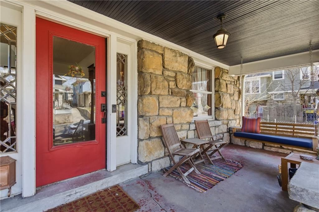 From the moment you step into the grand foyer, this turn-of-the-century home announces itself with confidence. A sweeping original staircase, ornate newel post, and richly detailed wood millwork set the tone for a home that has been thoughtfully updated without surrendering an ounce of its soul.The formal living room anchors the main floor with an original brick fireplace, original wood mantel, and a stunning columned cased opening that flows seamlessly into the rest of the home. Original hardwood floors run throughout, warm and wide, grounding every room in history.The kitchen is a showstopper. Custom blue cabinetry, marble countertops, subway tile backsplash, a professional gas range with statement hood, and open floating shelves come together in a space that is as functional as it is beautiful. A bold coral back door adds a pop of personality that perfectly reflects the spirit of this home.The dining room is equally impressive, with original columned millwork framing the passage to the living room and a gold chandelier overhead. The gallery wall and hardwood floors make this a room you actually want to gather in.Upstairs, the primary suite features a bay window, sage green walls, hardwood floors, a walk-in closet, and a stacked LG washer and dryer tucked conveniently nearby. The updated full bath showcases marble countertops, subway tile wainscoting, and a navy accent wall that ties back to the homes design language. Additional bedrooms offer great light, hardwood floors, and room to grow. A light-filled upper office with panoramic windows makes working from home genuinely enjoyable.Two beautifully appointed bathrooms carry the homes aesthetic all the way through, with vessel sinks, marble counters, brass and brushed-nickel fixtures, and the same signature navy tilework.A home like this does not come along often. Classic Kansas City bones, a kitchen people will talk about, and the kind of craftsmanship that does not exist in new construction!