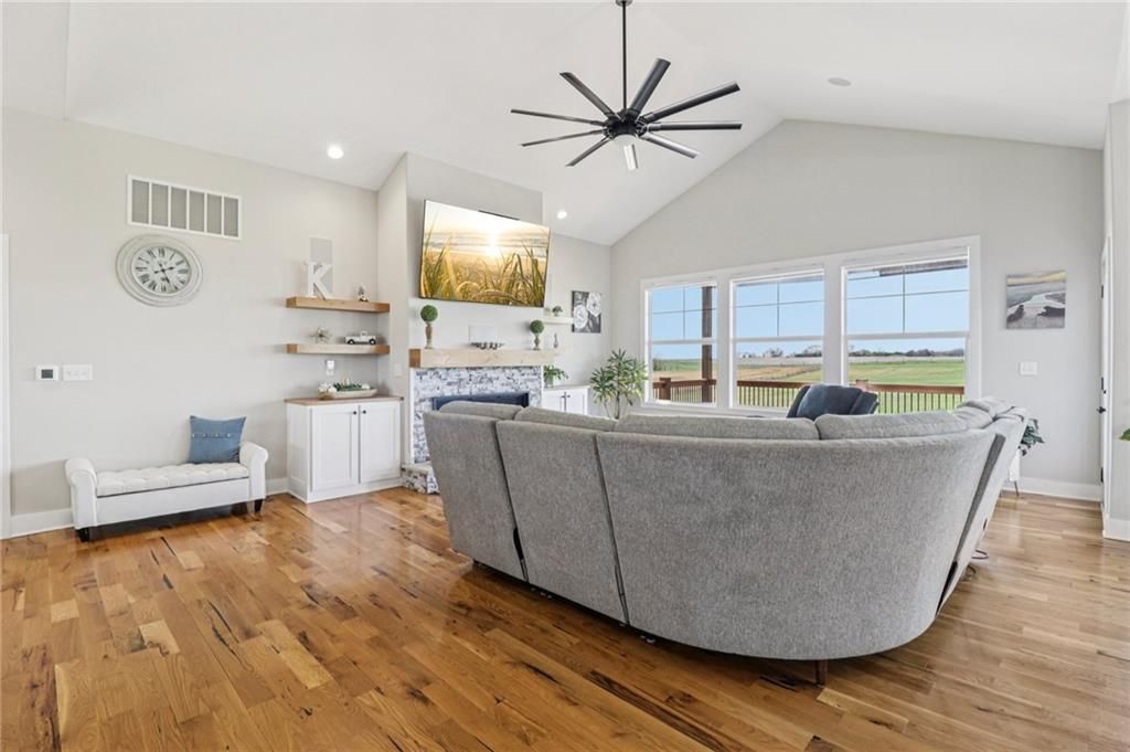 Set on a breathtaking 9.38 acres, this custom-built ranch-style home offers the perfect blend of quality craftsmanship, thoughtful design, and serene country living. From the moment you arrive, youll be drawn in by the peaceful setting, expansive views, and the sense of privacy that makes this property truly special.Inside, an abundance of natural light fills the home, highlighting the beautiful hardwood floors that flow throughout the main living areas. Designed for comfort and functionality, this home features 3 spacious bedrooms and 2 full bathrooms, all thoughtfully laid out for easy, everyday living.At the heart of the home, the stunning kitchen showcases a large island?perfect for gathering with family and friends or entertaining with ease. The open-concept design seamlessly connects the kitchen to the main living spaces, creating a warm and inviting atmosphere.Step outside to the covered deck and take in the most incredible sunsets?your own private escape. The full walk-out basement offers endless possibilities, ready to be finished to fit your lifestyle?whether you envision additional living space, a home theater, gym, or guest suite.With custom quality throughout, room to roam on nearly 10 acres, and views youll never tire of, this one-of-a-kind property is the perfect place to call home.