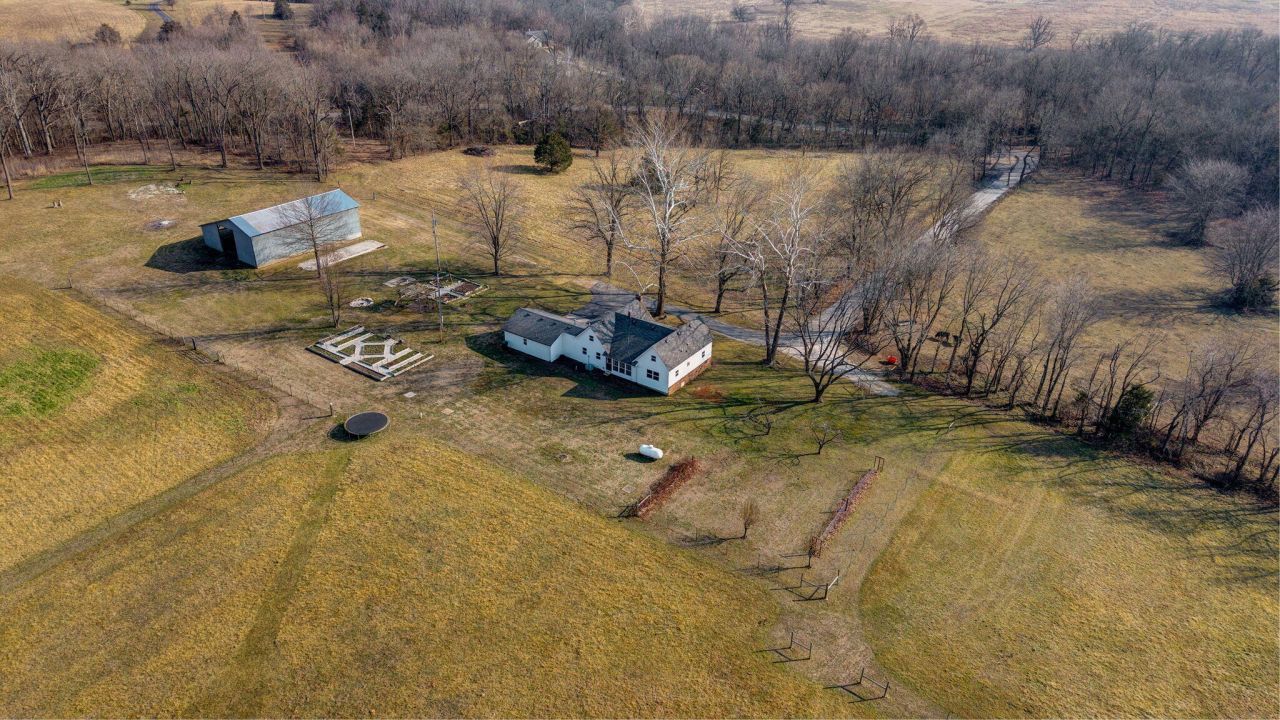 Pristine farmhouse on 16 acres at the end of a paved private drive, perfectly located just 10 miles from Springfield Airport and 8 miles from I-44 ? offering privacy without sacrificing convenience. This beautifully landscaped property is a gardener's dream, featuring 11 raised garden beds with trellises, a custom stone herb garden, raspberry, strawberry, and blackberry patches, along with peach trees and pear trees.Furthermore, take advantage of the RV pad, along with a fire pit, and gazebo. Enjoy your evenings next to the large scenic pond. The land has been soil tested and is ready for your homestead plans or livestock. A massive 48x65 workshop includes a custom-built chicken coop and lean-to for farm stock, providing excellent functionality for hobby farming or business use.Inside, the home welcomes you with a cozy sitting area featuring a wood-burning fireplace with recessed lighting and built-in cabinets and shelving. Floor-to-ceiling windows in the living and dining room offer stunning wildlife views and natural light. Just off the kitchen is a bonus room with full bathroom that could serve as a private master suite, guest quarters, or home gym.Upstairs, the bedrooms are complemented by a spacious playroom and full bathroom, creating the perfect setup for family living and entertaining.This property truly combines comfort, charm, and versatility ? a rare opportunity to own a turnkey farmhouse retreat.