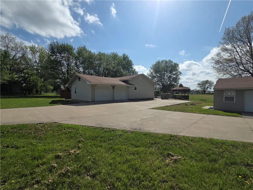 This spacious ranch home, set on nearly an acre (.91 acres), offers the perfect blend of comfort, functionality, and room to grow. Situated outside city limits on a flat, expansive lot, theres plenty of space for your projects, recreational vehicles, and outdoor enjoyment.The main level features a classic and inviting 3-bedroom, 2-bath layout thats move-in ready. Downstairs, the finished basement provides incredible flexibility, currently set up as a recreation area and two additional bedrooms, with ample storage and endless potential to customize to your needs. The home has a newer roof, Smart 80 Gal hot water heater, and an automatic sump pump with battery back-up.Car enthusiasts and those needing extra space will love the attached parking for 2 vehicles, along with an detached 2-car garage for even more storage or workspace. Right beside the detached garage is an extra large concrete RV parking spot with an outlet you plug in your RV.Step outside to enjoy the covered deck overlooking the wide-open backyard?perfect for relaxing evenings and taking in beautiful sunsets. Additional outdoor features include an enclosed patio and a charming gazebo, creating ideal spaces for entertaining or unwinding.This property truly has it all?space, versatility, and the freedom to make it your own.