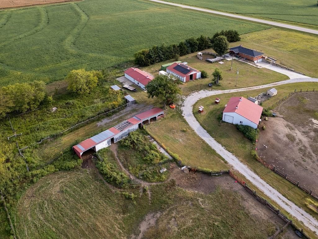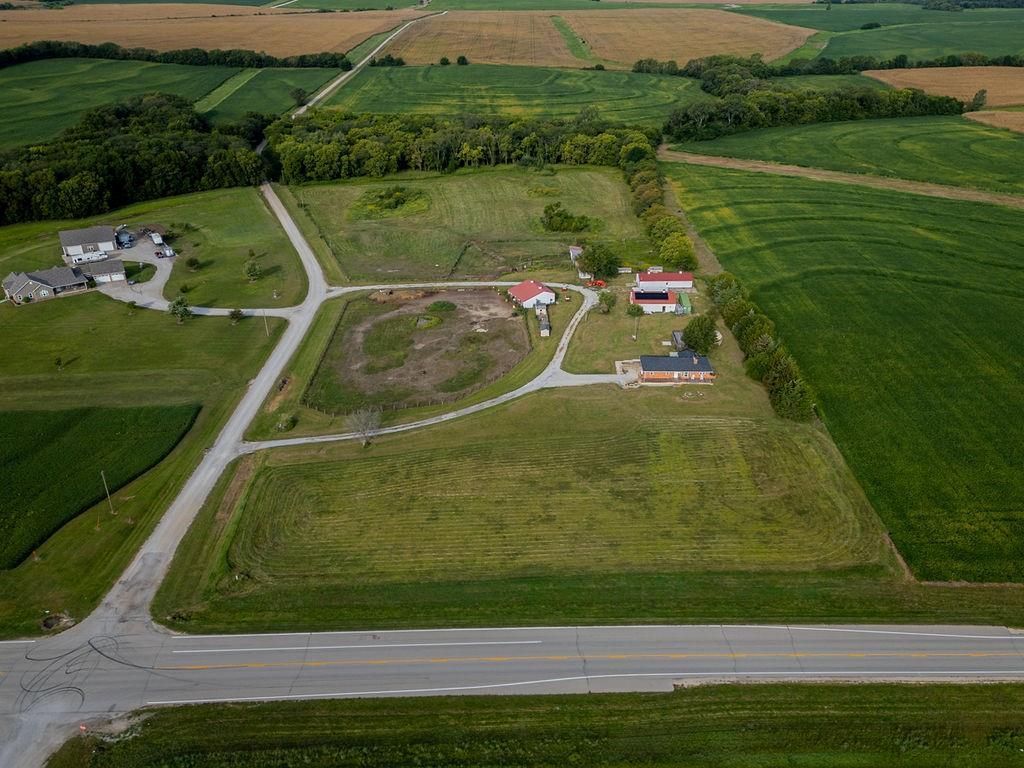 This versatile 20-acre property offers a combination of rural living and functional improvements, featuring an updated brick home and multiple metal outbuildings designed for durability and low maintenance. Conveniently located with access to Leavenworth, Lawrence, and Topeka, the property provides both privacy and accessibility. The land is well suited for horses, livestock, or hobby farming with multiple fenced areas, metal lean-tos within fenced sections, and five water spigots placed throughout the property. Outbuildings include a 60x25 building with water and a half bath, a 25x40 horse barn with five stalls, lean-to and fencing, and an additional 45x35 building. All buildings are equipped with electricity. Situated on a paved road, the property also features a solar panel system designed to help reduce annual utility costs and increase energy efficiency. Additional exterior features include a concrete driveway, sidewalks, rock retaining walls, a covered front porch, and a patio area suitable for outdoor enjoyment. Numerous updates have been completed, offering a property that is ready for immediate use.