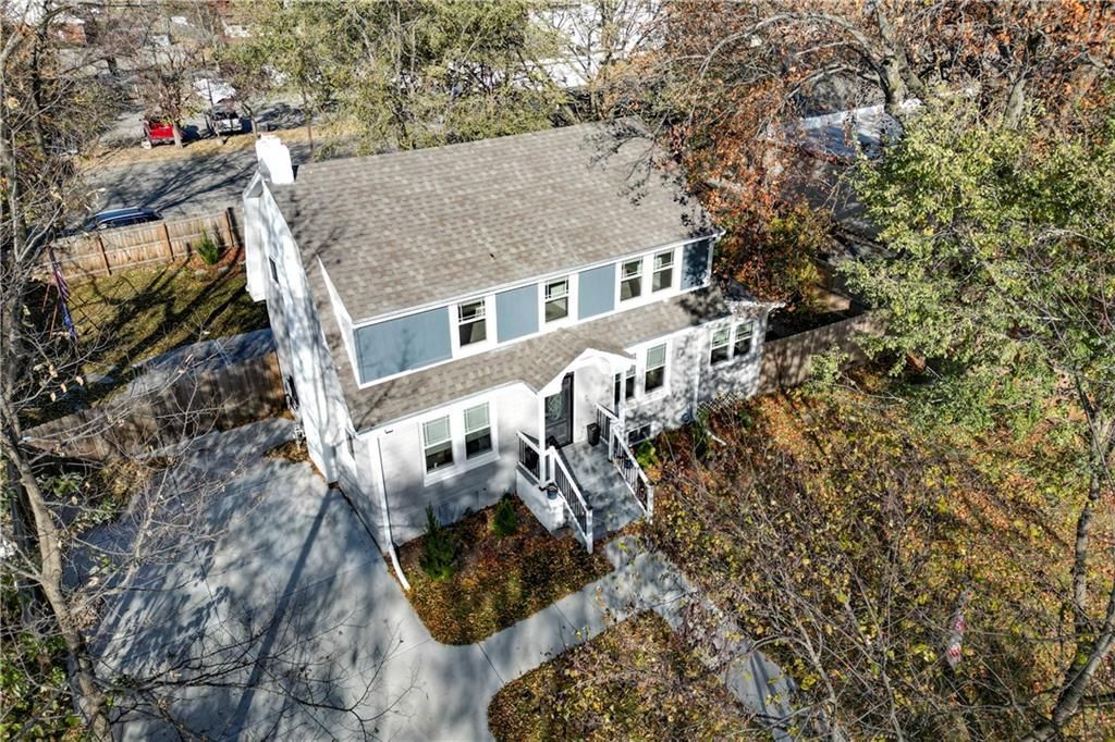 Welcome home to this beautifully updated Dutch Colonial, perfectly positioned in the heart of Blue Springs historic district?just steps from downtown, schools, and local parks. Classic character meets modern comfort at every turn. The spacious family room invites you in with a cozy fireplace and luxury vinyl plank flooring that flows throughout the main level. Entertain with ease in the formal dining room and updated eat-in kitchen, featuring granite countertops, stainless steel appliances, shiplap accents, a breakfast bar, and generous storage. A bright sunroom/mudroom adds everyday function with a built-in boot bench and direct access to the backyard, while a main-level half bath offers added convenience for guests. Upstairs, youll find three generously sized bedrooms with ample closet space and upgraded window shades. The primary suite shines with an oversized closet and private bath highlighted by a sliding barn door and tiled shower. The partially finished lower level expands your living space with a versatile non-conforming fourth bedroom, complete with a walk-in closet and half bath, plus a dedicated laundry area with sink. Thoughtful upgrades throughout include high-efficiency ProVia windows, an Aprilaire humidifier, built-ins, and stylish fixtures on every level. Outside, enjoy a spacious fenced yard with a remodeled front porch, patio, storage shed, lush landscaping, and a full 6-foot privacy fence. A double-wide driveway provides plenty of off-street parking. This historic gem delivers space, style, and unbeatable walkability?right in the heart of Blue Springs.