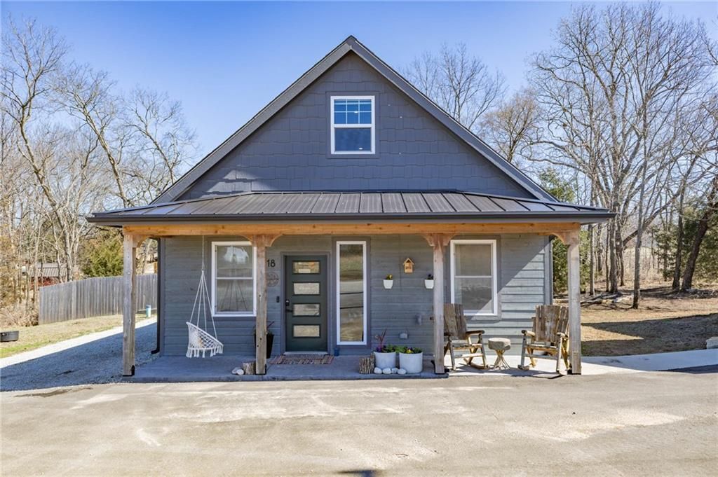 This is truly a custom home, located within the gated community of Linn Valley Lakes. Nothing about this home is builder grade including design, quality, features, or style. Enter the home and you are treated to a beautiful gas fireplace with a stone face, concrete floors, and designer fixtures. 10 ft ceilings provide the open look and feel throughout the entire main level. The chefs kitchen includes high-end stainless-steel appliances, a gas stove, custom cabinets with brass handles and stunning green quartzite countertops. The quartzite is heat resistant has the look of marble, yet it is easier to maintain. Four can sit at the island, but there is room for a small table if you wish. The backsplash is black subway tile laid in a herringbone pattern on one side and a beautiful gold and black hexagon pattern on the other. As you leave the kitchen and head to the back door, there is a large pantry, a laundry room, and a mudroom. Get ready to feel pampered in the primary suite. The large bedroom has a feature wall and lots of natural light. The primary bath includes a quartzite vanity with double sinks and beautiful brass lighting. The shower is a work of art with 4 different tiles that blend to create something beautiful. A bidet? You bet! The main bath and the second bedroom are also on the main floor. Going up the stairs, you have gray carpeting and white wood trim with black iron balusters. The 3rd bedroom is a loft, and it has a walk-in closet. The fully fenced backyard has a resort feel with over 200 sq feet of covered porch and then decking extending out to the large swim spa. The jets can create a water flow for swimming, and it feels more like a pool than a spa. The detached garage has a bonus room upstairs that is heated and cooled by a mini split and makes a great office, craft room or simply a get-away space for kids (or adults). It would be impossible to re-create this home for the list price, so make plans to see this special home soon!