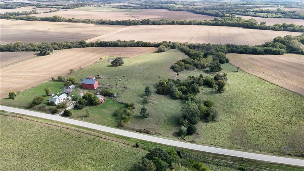 Country home on 27+/- Acres located just South of Horton Kansas on US Hwy 159. This established home offers the new owners the option of remodeling or possible tear down and build a new home. Additional outbuildings compliment the home. A large barn holds potential for entertainment and gathering space or convert back to ag use. Home offers a detached two car garage with power and concrete floors. There are several additional outbuildings perfect for storage or use in livestock production. The land is a combination of pasture with a pond and some timber on the North side of the land offering some recreation. Mature fruit and nut trees including pear, peach, cherry, apple, appricot, chestnut, pecan. Farm has some fencing on it and is cattle tight at the present. There are wells on the property that offer an opportunity to water livestock in pastures. This acreage would offer an amazing setup for a country home and acreage with livestock and/or income opportuities.