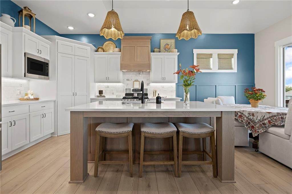Better than new! Lovely four-bedroom reverse one and a half story by Pfannes Homes with tons of upgrades on a quiet cul-de-sac. Quartz counters, stainless steel appliances, upgraded lighting and hardware throughout, wood floors on main level. Large rec room area on the daylight lower level +2 bedrooms and a third-full bathroom and loads of storage space! Award-winning Basehor-Linwood school district! *big ticket items that stay with the home, refrigerator, washer & dryer and full house water softener and purifying system*