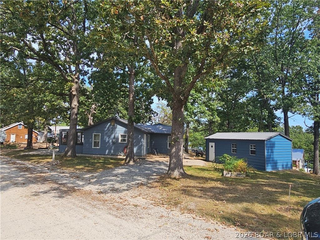 NEW PRICE. Just Relisted. Charming 2-bedroom home (one non-conforming) ideal for a weekend getaway, hunting or fishing cabin, or starter home. Enjoy lake views from the large screened-in porch, perfect for relaxing after a day outdoors. The property includes two newer insulated metal buildings on concrete pads, including a 2-car garage with space for a workshop or deer-hanging station, plus a 14x25 storage shed with flexible use for equipment or hobbies. Recent improvements include a new metal roof, 200-amp electrical service, private well, and a recently inspected septic system, keeping ownership simple with electricity as the primary utility. Located in El Lago Lodges subdivision, owners enjoy access to a boat ramp, community dock, day dock, and swim area, all with no HOA fees. The home is within walking distance or a short side-by-side ride to Boondocks Bar & Grill and Lazy Dayz Resort, with multiple popular lakefront restaurants and marinas just minutes away by boat. Nearby Fiery Fork Conservation Area offers public hunting, fishing, kayaking, and outdoor recreation.