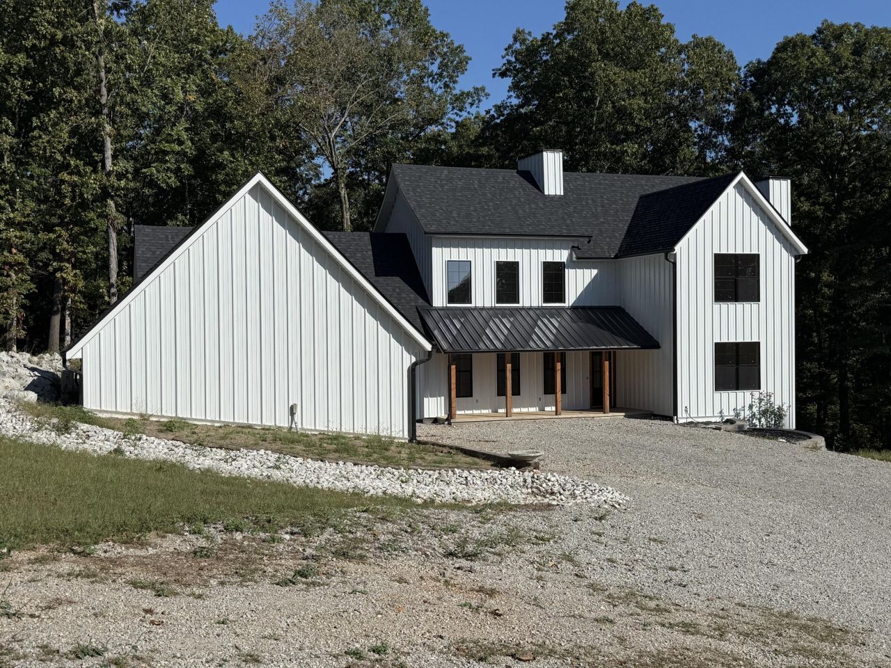 Nestled on 13.34 private acres at 19 Builders Lane in Anderson, MO, this nearly-complete custom home offers the rare combination of seclusion and convenience?tucked away in nature yet located just outside the city limits. Spanning 4,030 sq ft across three levels, the home features 4 bedrooms, 3 full bathrooms, and 2 half baths. The main floor is thoughtfully designed with accessibility in mind, offering the primary suite, additional bedroom, and office space on the ground level. The spacious living room centers around a striking custom wood-burning fireplace, adding warmth and character to the space. Upstairs, you'll find two more bedrooms plus an additional bonus room?perfect for a fifth bedroom or guest suite. The basement is set up as an additional living area, ideal for a game room, media space, or private retreat. Even the oversized two-car garage is heated and cooled for year-round comfort. The exterior features low-maintenance metal siding, providing both durability and a modern, clean look. The home is approximately 90% complete, giving the next owner the exciting opportunity to finish it to their taste and style. Outside, a flat area in front of the home offers an ideal spot for a future shop or outbuilding. If you've been looking for a place with space, privacy, and potential?this is it. All this stunning property needs is someone to make it their own!