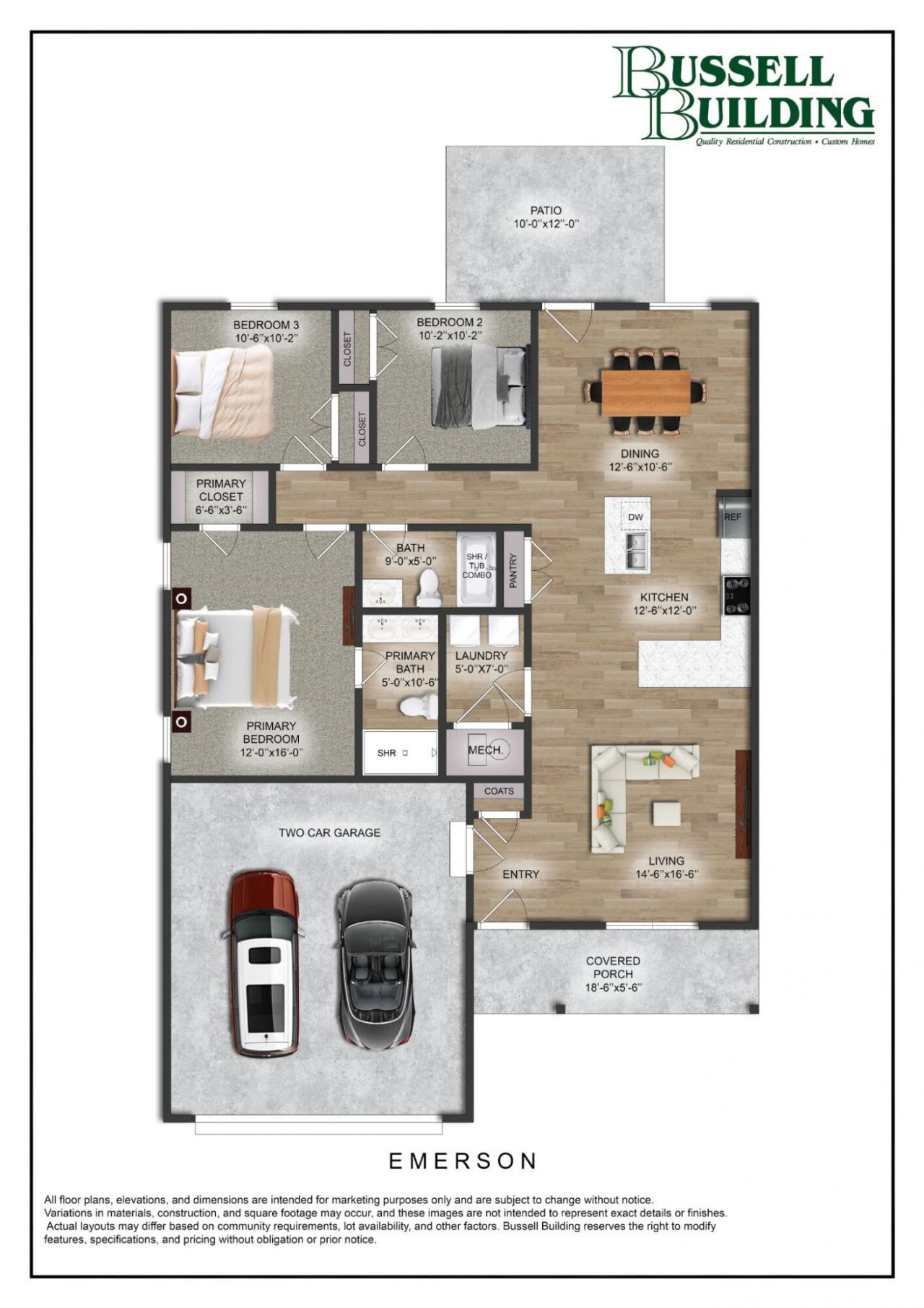 The Emerson offers a smart and functional layout with over 1,400 sq. ft. of well-planned living space. Featuring an open concept, the kitchen, dining, and living areas come together seamlessly to create the heart of the home. The spacious primary suite provides a private retreat, while two additional bedrooms ensure plenty of room for family or guests. With thoughtful details like a covered porch, two-car garage, and ample storage, the Emerson is perfect for both daily living and entertaining. *Photos may be of a similar home*
