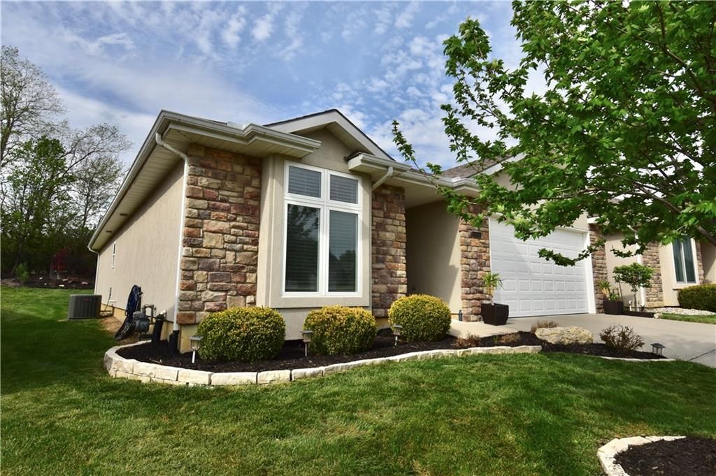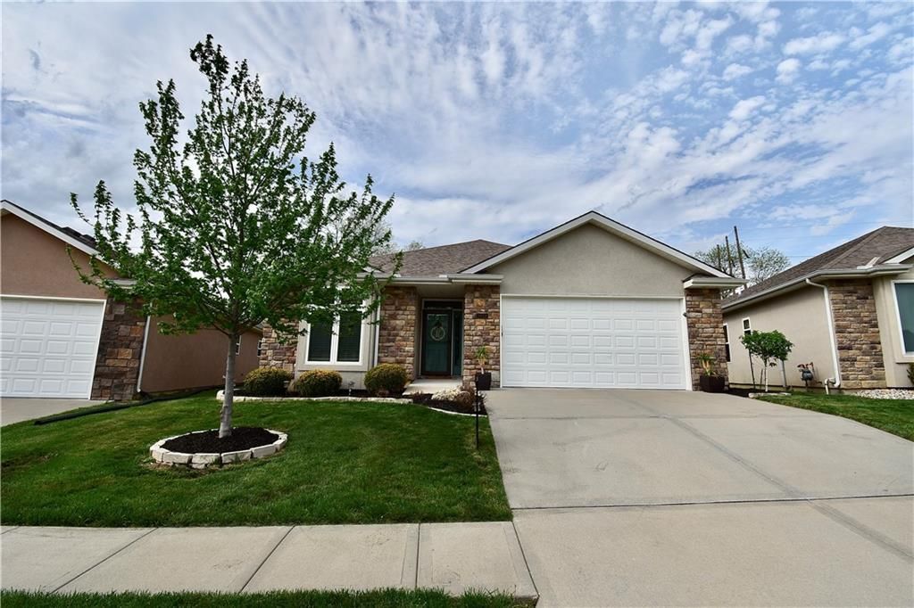 Beautifully updated reverse 1.5 Story on a quiet cul-de-sac in Liberty w/CRAZY LOW HOA fees of JUST $67/month! This well-maintained, 10-year-old home offers approximately 2,600 sq ft of finished living space plus aprox. 900 sqft in the lower level. Seller spent $80,000+ in upgrades completed in the past two years. HOME Designed for easy main-level living, this home features zero-entry access, wider doorways, & low-profile step-in showers. Open floor plan showcases fresh interior paint, new hardwood floors, natural color, throughout the entry, living, dining, and kitchen areas, and a stylish board-and-batten accent wall, refrigerator stays! Kitchen is both functional and inviting with a granite peninsula island, full-extension drawers, pull-out shelving, and all-new lighting. The primary suite offers a spa-like retreat with a fully remodeled bathroom featuring Carrara marble finishes, frameless glass shower, tiled floors, and trendy built-in shelving. The main level includes a total of two bedrooms, a second full bath with linen closet, and a spacious laundry room with additional storage. All new Lighting, new stair carpet, & carpet in 1 bdrm. The recently finished lower level expands the living space w/luxury LVP flooring, large family room w/custom built-ins, a stunning 7-foot bar w/Carrara marble, two additional bedrooms (one non-conforming), walk-in closets, a full bathroom & plentiful storage space. Enjoy nearly 400 sq ft of outdoor living space, including a covered patio and extended paver patio with a lighted sitting wall?perfect for relaxing or entertaining?backing to a private tree-line w/ frequent wildlife & beautiful sunsets. HOA does allow fencing! Ideally located just minutes from Liberty Hospital, I-35, 291, and 152, offering quick access to downtown Kansas City and KCI Airport. Maintenance-provided community includes lawn care and snow removal for ONLY $67.00 A Month! HOA has SURPLUS! balance! Liberty School District! Sellers closing date is FLEXIBLE!