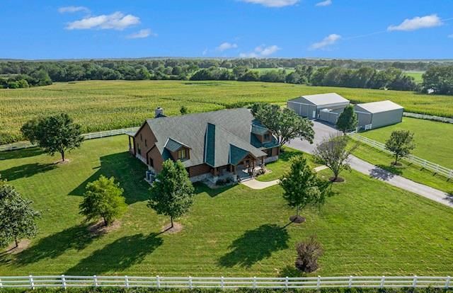 Discover the charm of rustic living at 19295 Highway 52 in Pleasanton, KS. This beautiful log cabin-style home is set on a picturesque 15-acre parcel, offering a perfect blend of natural beauty and modern comfort. The residence features 4 bedrooms and 3 bathrooms, spread over 3,149 square feet of living space, each corner thoughtfully designed with natural wood details and expansive windows that fill the home with light.Inside, enjoy the open-concept layout that seamlessly connects the living, dining, and kitchen areas?ideal for both everyday living and hosting gatherings. The kitchen, equipped with modern amenities, provides a functional space for culinary enthusiasts.The expansive acreage surrounding the home presents endless opportunities for outdoor enjoyment. The land has a beautiful tree line to the west, offering privacy and a sense of seclusion, yet ample open space invites recreational activities. Additional structures include a 40x56 pole barn, a 42x56 barn, and a 8x12 shed, providing versatile options for storage or hobby uses.This log cabin retreat in Pleasanton is more than just a home; its a lifestyle choice, inviting you to experience the tranquility and beauty of rural living with the convenience of modern amenities. Explore the potential of this unique property today.