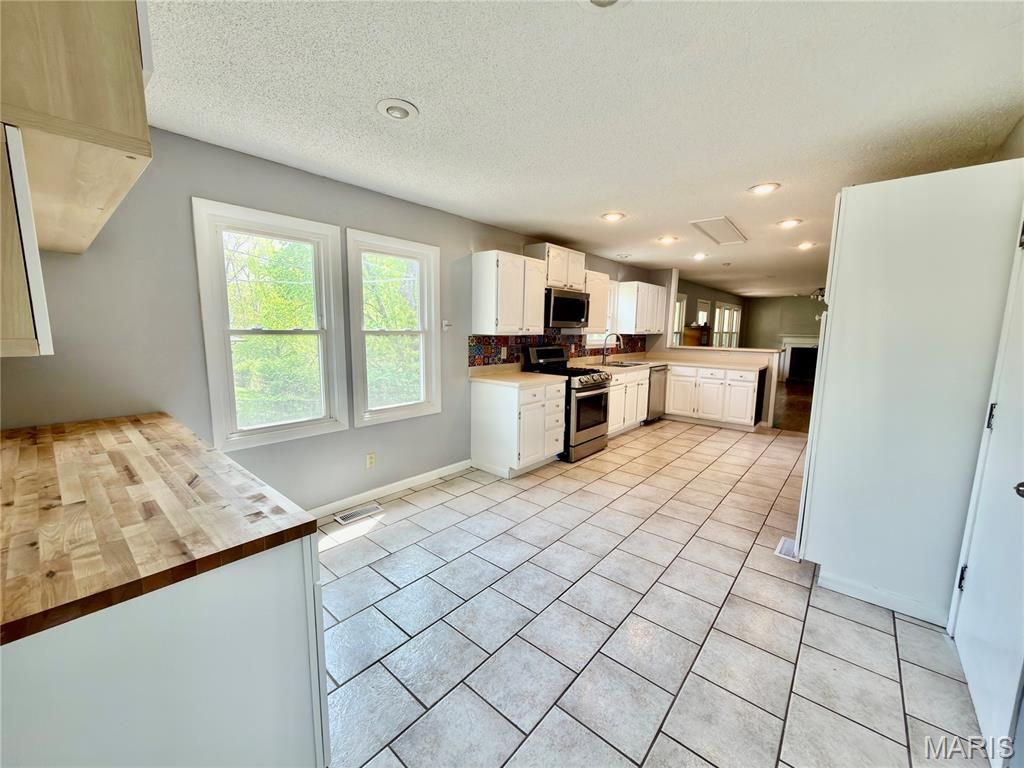Stunning, move-in-ready ranch in Old Farm estates with nearly 5,000 sq ft of finished space! This modernized home features a brand-new deck, newer roof & shingles & underlying wood, refreshed exterior, and a fully opened-up main living area rarely found in the neighborhood. Inside you'll find 5 main-level bedrooms, 3.5 updated baths, real hardwood floors throughout, and a spacious kitchen with freshly painted cabinets and newer appliances. The finished walkout lower level is perfect for multigenerational living, guests or rental potential - complete with renovated second kitchen, new flooring, remodeled full bath, two additional sleeping areas, multiple rec space and abundant storage. Upstairs and downstairs laundry hookups add convenience. Enjoy a private backyard with a new retaining wall, plus neighborhood amenities including a pool and playground. Located in the Parkway Central School District with quick access to highways, parks, shopping, and dining. A rare combination of space, updates, and modern layout-this one stands out! Attic fan does not work.