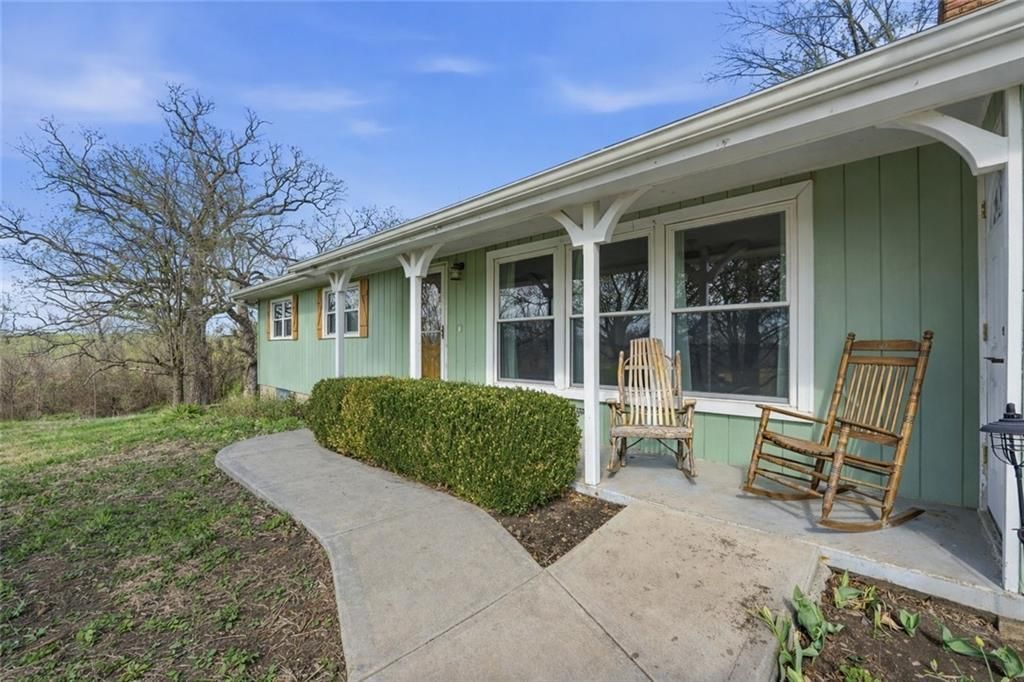 Welcome to this beautifully updated home in the Burns Addition subdivision of Edgerton, Missouri. From the moment you walk in, youll love the warm hardwood floors, stunning brick fireplace and custom built-ins that create a cozy and inviting living space. A wall of windows fills the home with natural light, making every room feel bright and open. The updated kitchen offers an abundance of cabinet and counter space, featuring Corian countertops, a gas cooktop with stainless steel hood vent, tile flooring, and a built-in pantry?perfect for everyday living and entertaining. Just off the kitchen, step out to the expansive covered deck overlooking a large, private lot with mature fruit trees, creating a peaceful outdoor retreat youll enjoy year-round. All three bedrooms are generously sized, and the primary bathroom has been fully updated with a fresh, modern feel. Youll also appreciate the convenience of main-level laundry complete with built-in cabinets and a utility sink. The unfinished walkout lower level provides excellent storage or future finishing potential, and the attached two-car garage adds even more functionality. A small shed offers additional outdoor storage, and the serene setting provides privacy while still being conveniently located. This home truly combines comfort, space, and thoughtful updates?ready for you to move in and enjoy.