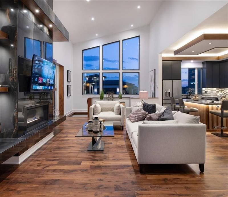 This home is a contemporary ranch plan, 4 bed, 3 ½ bath, 3 car tandem garage with a full lite frosted glass garage door. 50 year presidential roof and Control 4 automated lighting package. The exterior consists of cedar shiplap siding, acrylic stucco and contemporary white stone. The kitchen comes complete with full overlay enamel cabinets, walnut floating shelves, under cabinet accent lighting, full GE Café stainless appliance package with gas cooktop, refrigerator, dishwasher, speed cooker/microwave, convection oven, Mercury Gray Quartzite countertop and stainless farmhouse sink. The L shaped island consists of a wine refrigerator, bar sink, undercounter accent lighting and walnut accent strips on cabinet face with Mercury Gray Quartzite. Drop down vaults with walnut trim and LED accent lighting. Linear contemporary fireplace with large format onyx tile and floating shelves with accent lighting. Vaulted ceiling in great room with 12-foot scissor door, floor to ceiling windows, walnut hardwood floors & trim package. Master has drop down vault with walnut trim package accented with LED lighting, 8 ft slider to covered deck. Oversize master bath with walnut cabinets, upgraded contemporary tile and accent lighting. The Lower-level great room, with entertainment center, full bar, 4th bedroom with walk-in closet, ¾ bath complete this plan as a true entertainment home, comfortable and private. Home is 5-star energy rated, 95% efficiency furnace, 50-gallon hot water heater and blown in batt insulation. Added Bonus of a 1000 square feet of Unfinished area with the ability to have 2 more Bedrooms, Jack and Jill Bathroom, as well as an expanded Great Room of 300 additional square feet.