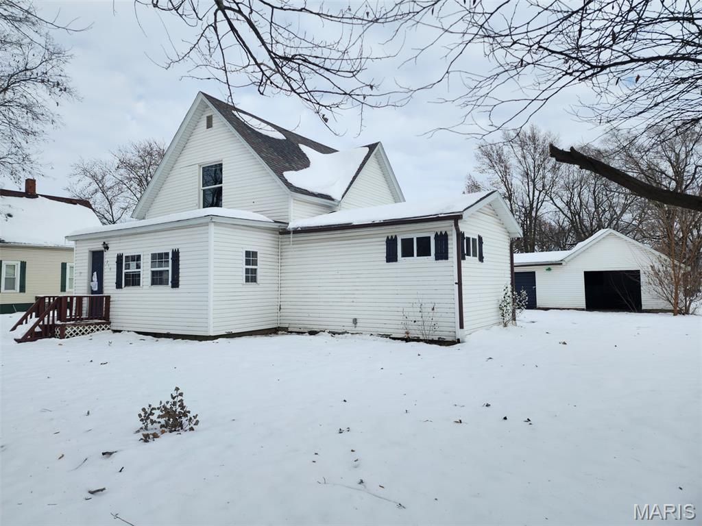 Discover the potential in this 3 bedroom, 1 bath home situated on a spacious corner lot in the heart of small-town rural living. Located just 29 miles from the Illinois State Capitol in Springfield, you'll enjoy peaceful surroundings with easy commutes to local businesses, restaurants, and community amenities. Step inside to find a functional main level layout featuring a generous eat-in kitchen, living room, bonus front room, utility room, and the primary bedroom-offering convenient main-floor living. Upstairs, two additional bedrooms provide extra space for family, guests, or a home office.Outside, the oversized 3-car garage gives you plenty of room for parking, hobbies, or storage - a great fit for those who need extra space. If you love bringing older homes back to life, this one is ready for your renovation dreams. With the right vision, this property can become your ideal forever home or a fantastic investment opportunity. Buyer/Buyers agent to verify all information for accuracy before submitting offer. MLS information pulled form numerous sites.