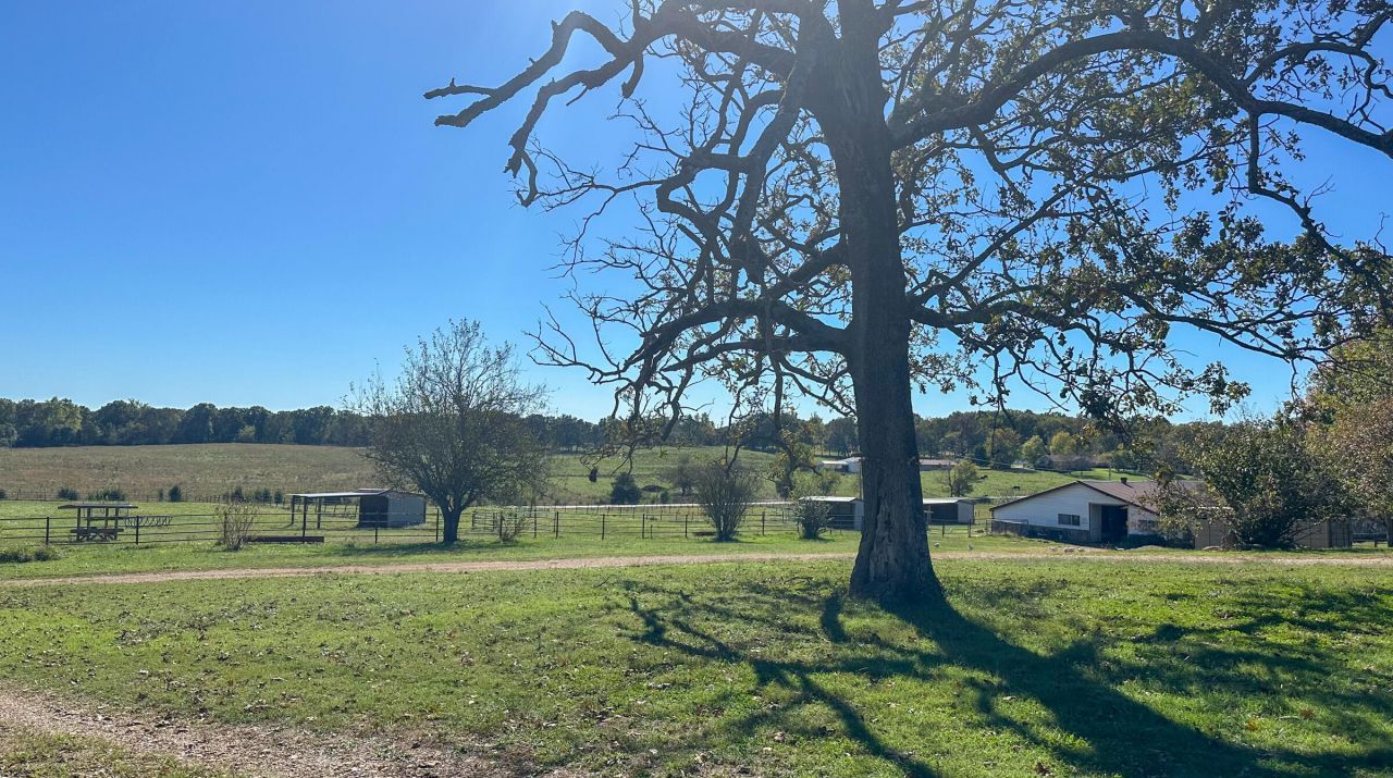 Missouri Farm! Equine Facility! Missouri Cattle or Horse Ranch with spacious home.80 Acres m/l mostly open, gently rolling pasture with scattered trees and one wooded corner, ¼ mile Highway W frontage. 3 ponds - 2 stocked. Pipe Fencing, Fencing & Cross Fenced, new fence along road basket-weave with barbed wire on top. 4 front paddocks with shelters & water, 2 hayfields.Each area has water access, pond or multiple water hydrants throughout the property.House is 3500 sqft m/l - one level with exception of slight step-down in family room.Living room with stone fireplace, wet bar, Kitchen with big kitchen bar and work space, lots of cabinets, dishwasher, disposal, compactor, oven, convection oven, electric cooktop. Dining Room, Office, Family room with beautiful stone fireplace, Mud room off garage with 1/2 bath & laundry area. 3 Bedrooms, 3 ½ Bath - Large master suite with BIG full bath, walk-in shower, tub, walk-out porch, Large second suite with full bath, 3rd bedroom with full bath with shower. 2 furnace heat pumps.Primarily stone exterior, Metal roof, 2 car attached garage, Awesome outdoor lighting.Landscaping - banana trees, magnoliasWalk-in storm shelter, Above ground pool.Well has newer pump and casings. Asparagus bed, apple/peach/pear trees.Buildings: Horse barn 137x47 stone wallsWash RackBIG tack roomWork area with benchesMetal vet stockBird brooders space or holding pen9 - 22x11 stalls5 - 11x11 stallsLoafing stall at end of barnEnd of barn has more stalls and there is room for additional stallsFeed area with cabinetsBack paddock end of barnBreeding hitching postAlley to more paddocks30x20 Loafing shedMachine Shed pull-through with power, water and lean-tos on both sides60x80 indoor riding arena, corral, round pen and 14 ft equipment overhang.Large stone well house with storageDog Building with runs that is ½ for dogs, ½ for storageGarden shed with electric & water hydrant. **See Equipment List**