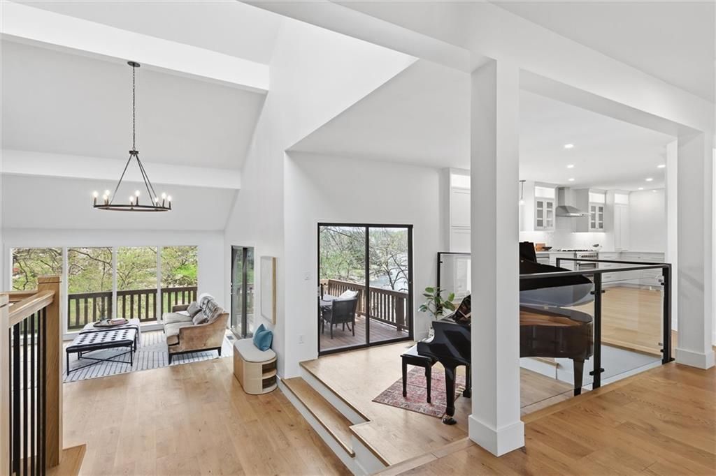 Welcome to a rare lakefront opportunity in Lees Summit! This 5 bedroom home is positioned on a peaceful cove and blends comfort, scenic views, and an elevated lake lifestyle. Stunning water views flow throughout the home, enhanced by real hardwood floors, large windows, vaulted ceilings, and multiple living spaces designed for both everyday living and entertaining. The main level primary suite offers both convenience while the flexible floor plan provides generous bedroom sizes, multiple gathering areas, and ideal separation for multigenerational living, guests, or work from home needs. Three additional bedrooms and one full bath are upstairs, and one enormous bedroom and bath reside in the lower level off a multipurpose recreational room. Several fireplaces throughout the home add warmth and character, and laundry on every level brings practicality rarely found in lakefront properties. Ample storage ensures plenty of space for organization and future customization! Multiple decks and patios overlook the water, creating the perfect setting for morning coffee and evening sunsets. The cove offers easy access to the water while still connecting you to the main channel for boating, kayaking, and paddleboarding. A spacious two car garage with an additional third lakeside garage provides exceptional functionality with direct water access ideal for storing lake gear, recreational equipment, and more. BONUS! $3,000 seller paid allowance for yard/landscaping or apply towards closing costs! Located in the highly sought-after Lakewood community, residents enjoy access to boating, golf, tennis, pickleball, walking trails, two swimming pools with water features, playgrounds, and clubhouse amenities. The home is also within award-winning schools and offers convenient access to shopping, dining, and major highways.