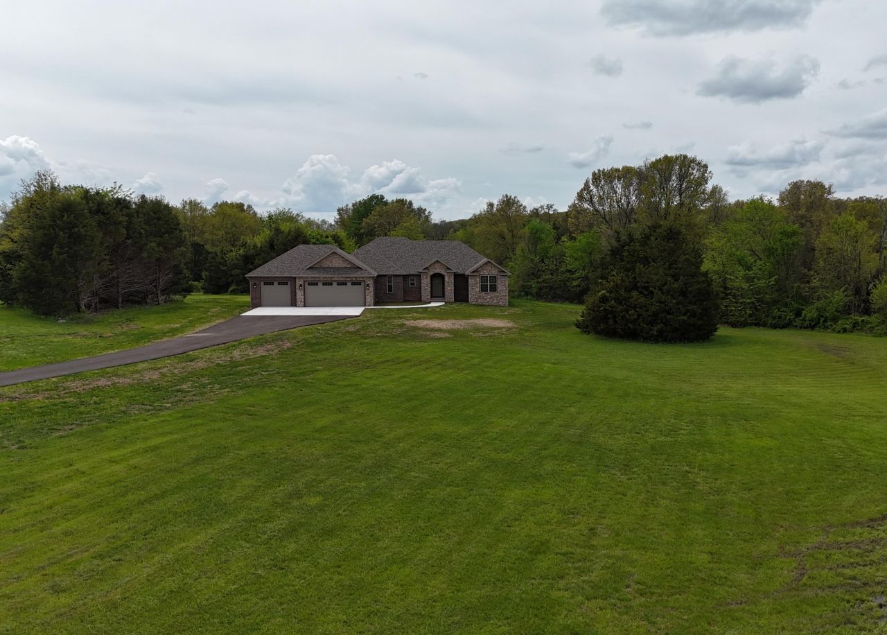 Brand-new all-brick home on 3.39 acres, perfectly positioned at the end of a quiet cul-de-sac! This thoughtfully designed 3-bedroom, 2-bath residence offers a split floor plan with a spacious and open kitchen/dining/living combo--ideal for entertaining. Enjoy granite countertops, custom-built cabinets, and a cozy gas fireplace in the main living space. The kitchen and bathrooms are adorned with stylish tile finishes, including tiled showers. Step out onto the covered back deck to take in peaceful country views, all just outside city limits in the highly desired Clever School District. An asphalt driveway completes this beautiful rural retreat--quality craftsmanship, privacy, and convenience await!