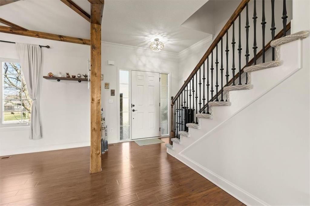 Welcome home to this stunning 2-story in Lenexa! With 4 bedrooms, 4 bathrooms (2 full, 2 half), and an open-concept layout, this home is designed for both everyday living and entertaining. The main level features beautiful hardwood floors, a formal dining room, and a light-filled great room with a cozy fireplace. The kitchen offers plenty of space to gather, with a walk-in pantry, eat-in area, and easy access to the backyard. Step outside to your private oasis?a fenced, level yard with a spacious paver patio and built-in firepit, perfect for hosting friends or unwinding at the end of the day. Upstairs, the primary suite is a true retreat with a double vanity, walk-in closet, and direct access to the laundry room for added convenience. The finished basement is ready for movie nights, complete with new LVP flooring, a half bath, and a large sectional couch that stays! In the award winning Olathe School District or perfect location for several private schools nearby.