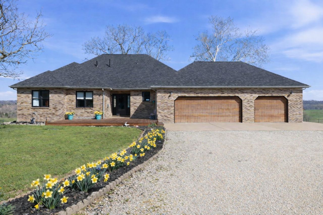 Escape the noise of city life and step into the lifestyle you've been craving. This exceptional Ozark Mountain homestead blends self-sufficiency with comfort--proving you don't have to sacrifice luxury to live close to the land.Set on 6.41 acres of rolling pasture and timber, this custom-designed home captures breathtaking panoramic views of the Ozarks from nearly every angle. With 3,051 finished square feet (4026 total), the home features vaulted ceilings, rich hardwood floors throughout, and seamless access to a sprawling view-facing deck from the primary suite, living room, dining area, and kitchen--perfect for slow mornings and sunset evenings.This property is built for true homestead living. Bring your horses, livestock, and chickens--there's room to grow, roam, and cultivate your own way of life. A 36x48 shop with a 4-stall horse barn, complete with water, electric, and wood stove, supports both hobby and livelihood. A 3-car garage with workspace, 50-amp RV hookup, and gated drive with alarm add both convenience and security.Inside, the home strikes the perfect balance between rustic charm and modern comfort. The kitchen is equipped with double wall ovens and a propane 5-burner cooktop, while a gas fireplace anchors the living space as a cozy secondary heat source. Pocket doors, abundant climate-controlled storage, and an additional 975+ sq ft of unfinished, HVAC-ready space offer flexibility for expansion or customization.Outdoor living is just as intentional, with a covered deck made for quiet evenings, a dedicated hot tub pad with 220 hookup, and open skies that remind you why you made the move. And while it feels like a world away, adventure and amenities are close at hand--just 3 minutes to Flat Creek for floating and swimming, 15 minutes to Table Rock Lake, 40 minutes to Branson, and under an hour to Springfield.This isn't just a home--it's a lifestyle rooted in freedom, beauty, and possibility. Home Warranty offered.