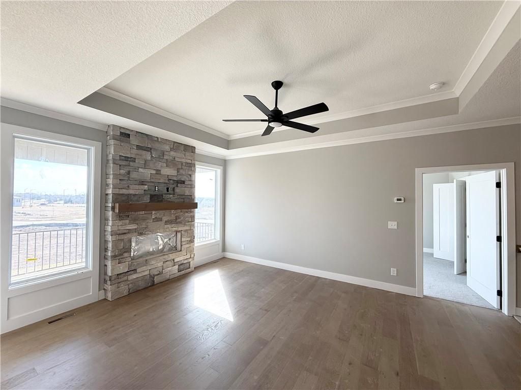 LUXURY MEETS AFFORDABILITY. Experience the best of Mize Hill with $20,000 in combined builder and lender incentives to significantly buy down your interest rate! This move-in ready Lakewood plan by Lambie Homes offers the perfect blend of sophistication and comfort. The heart of the home is a light-filled great room anchored by a Wolf Grey Sawtooth Ledge Stone fireplace. Entertain in the gourmet kitchen featuring premium quartz surfaces and a walk-in pantry, or enjoy a sunset from your covered deck. Designed for main-level living, the primary suite and laundry are conveniently located upstairs, while the finished lower level provides a spacious family room and two guest bedrooms. Enjoy maintenance-provided living just steps from Mize Lake and Cedar Station Park.