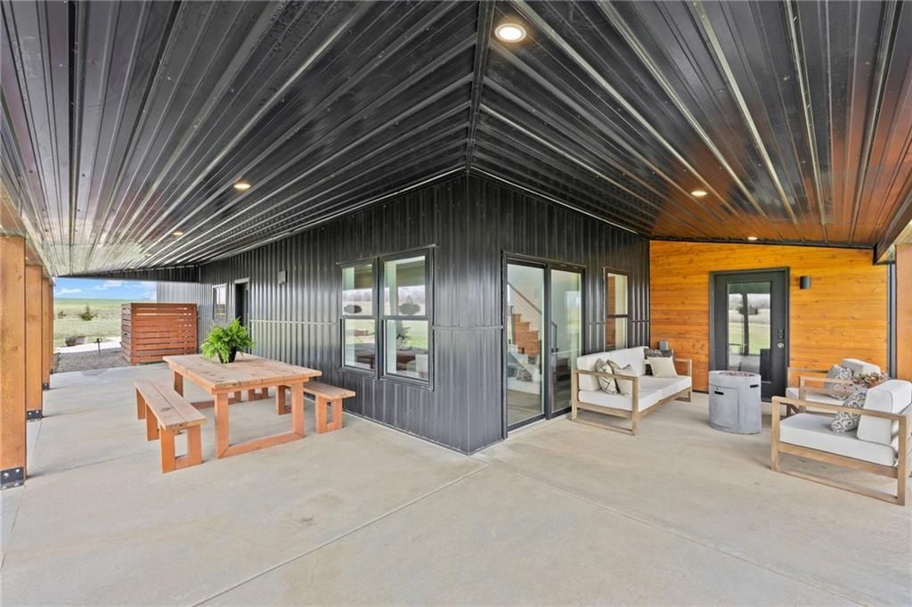 Experience function, flexibility, and country living with this custom-built barndominium on 14± scenic acres in Northern Miami County, located in the highly sought-after Louisburg School District.This impressive 60x125 structure with 18-foot sidewalls offers 1,600 square feet of thoughtfully designed living space alongside an expansive, multi-use shop. The 1.5-story home features an open, minimalist layout with 3 bedrooms (including one non-conforming), 2.5 bathrooms, and a main-level primary suite. Plumbing for radiant heat is installed in the concrete floors, and the living quarters is all-electric for efficient, comfortable living.Step outside and enjoy the 10-foot wraparound covered porch overlooking a picturesque setting complete with a professionally stocked, spring-fed pond, a creek, mature trees, and open pasture?ideal for both relaxation and recreation.The shop space is truly one-of-a-kind. Half is fully finished, heated, and insulated with a concrete floor, featuring a kitchenette, half bath, full RV hookups, basketball goals, and a large TV setup?perfect for entertaining or hosting game days. With ample space, youll have room to park multiple vehicles, equipment, or recreational toys indoors.The remaining half features a sand base, offering incredible versatility?ideal for an indoor riding area to keep horses conditioned year-round, equipment storage, or additional workspace tailored to your needs.Whether youre looking for a hobby farm, entertainment hub, or a unique live/work property, this one delivers unmatched versatility in a beautiful rural setting.