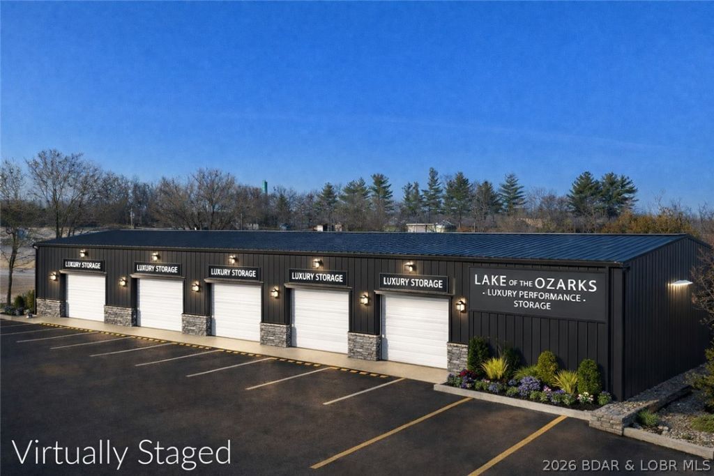Positioned along North Business Highway 5 with 227' of high-visibility frontage next to the Ozarks Amphitheater, this 10,950 SF commercial property presents a rare investment opportunity with multiple income and development angles. Built by Varco Pruden, the structure includes 7,700 SF of clear-span shop space with 18' sidewalls and a 22' peak-ideal for boat storage, contractor use, luxury toy storage, or future conversion concepts. The property also features 2,500 SF of finished living quarters with 2 bedrooms, 1 full bath, and 2 half baths, plus a 750 SF lower-level garage-offering potential for on-site management, rental income, or live/work flexibility. Additional land provides room for expansion or future building, enhancing long-term upside. Seller is offering owner financing options, adding flexibility for investors. With strong traffic exposure and versatile layout, this asset is well-suited for storage, showroom, or mixed-use potential in a growing Lake of the Ozarks corridor.