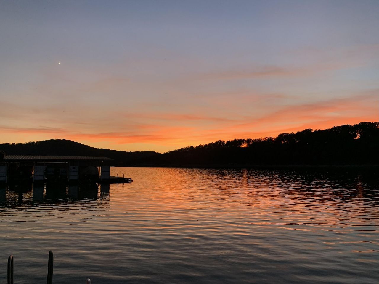 Stunning home with a fantastic Table Rock Lake View. This beautiful home is nestled in a fantastic neighborhood with the lake right across the street. The home features two bedrooms and two full bathrooms in a nice split foyer configuration. The home also boasts plenty of extra rooms so you'll have plenty of room for your family and loads of guests. There is a very nice sun room on the main floor and loads of room in the walk out basement. The main floor features a large open kitchen/living/dining area, the sun room, a nice laundry room two bedrooms and one bathroom. Walk down to the basement and turn right and you'll first notice the wet bar complete with a small refrigerator and a nice large living area with a pellet stove for the cold winter nights. There is also a pellet stove on the main floor in the living area. The oversized two car garage has plenty room and houses the water softener and central vacuum unit. All of this sits on two lots just steps away from Table Rock Lake. Call for a private showing of this beautiful home today.