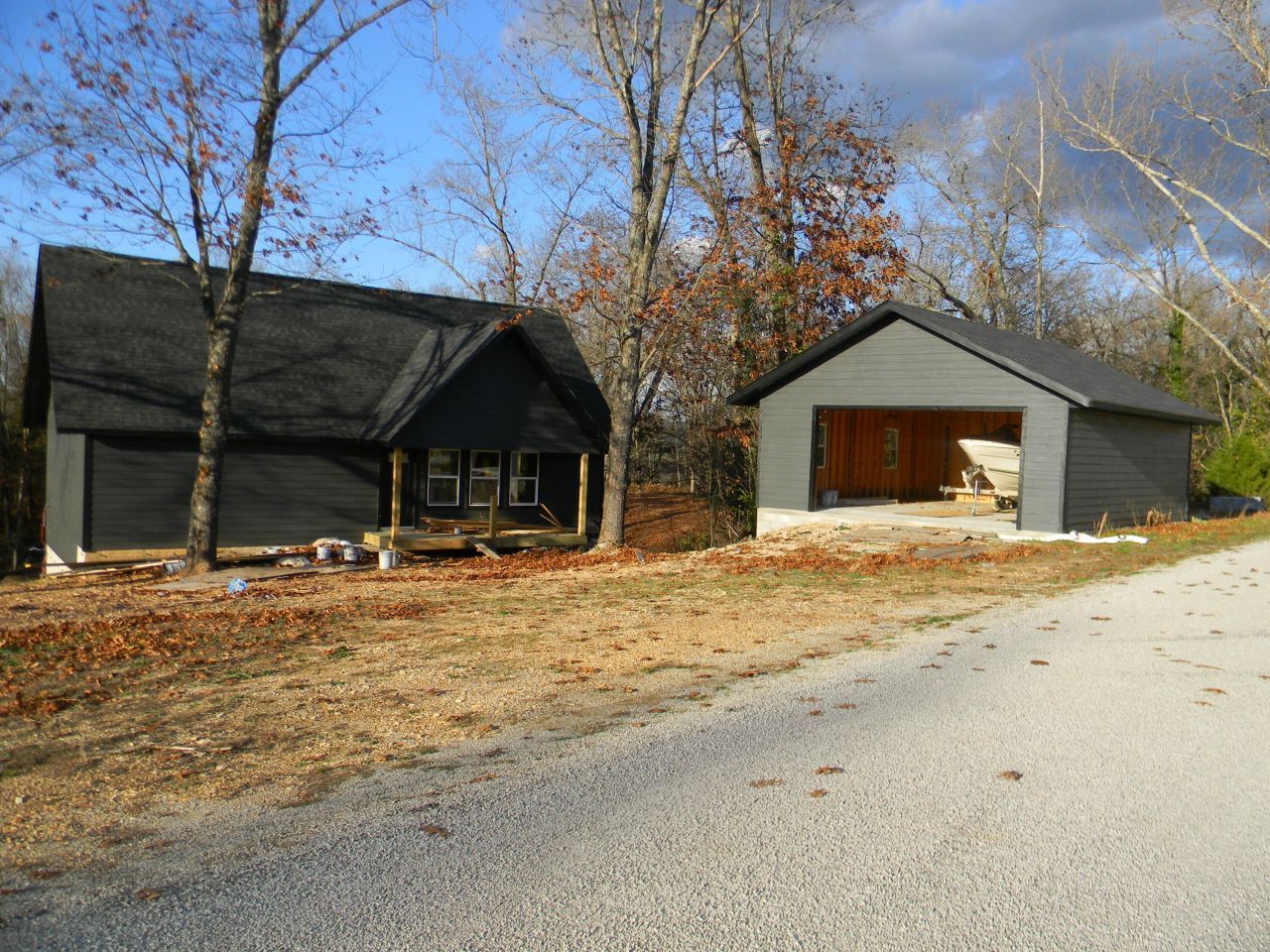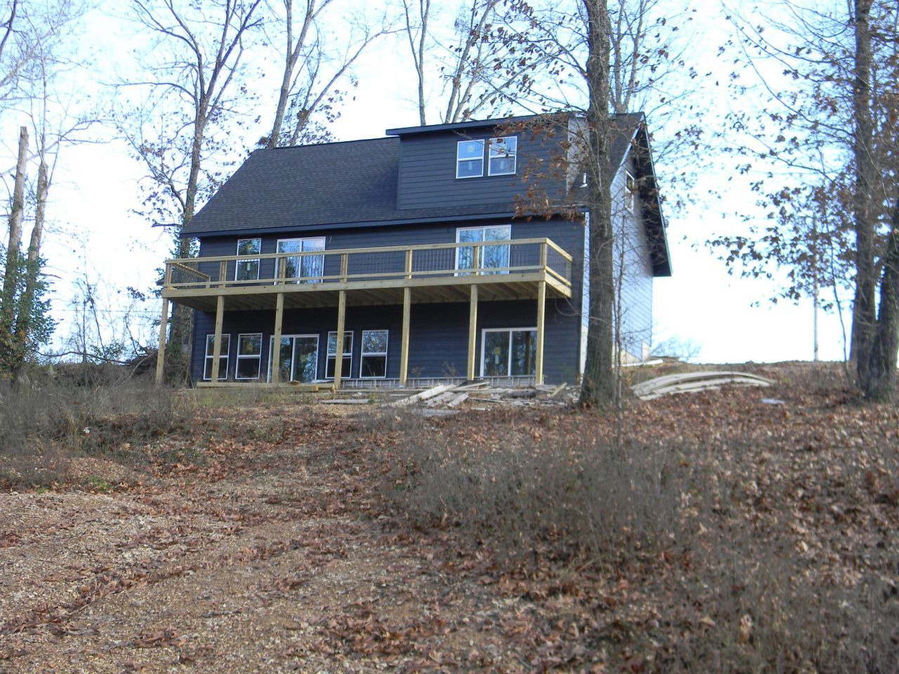 The owner is in the process of finishing this home , getting ready to set cabinets and finish basement , has one bedroom and bath on each floor plus half bath on main floor . Accent wall with all the glass and Stairway wall has carsiding on them and thru house in certain places Garage is 24 x 30 detached garage , A must see if your in the market for a very nice home near the lake .has laminated flooring and front room open ceiling open to top floo.r. Beautiful view