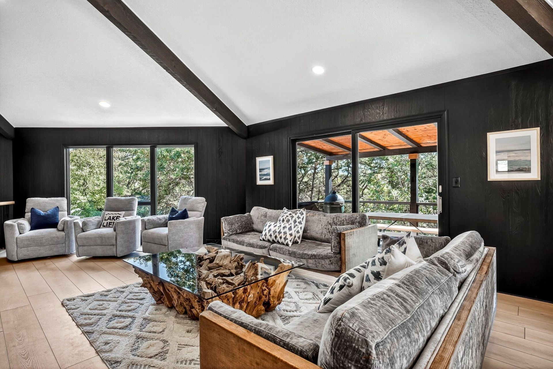 DON'T MISS THIS SPECIAL GEM! This one-of-a-kind octagon shaped lakefront home offers a perfect blend of modern luxury and architectural charm. Featuring 4 bedrooms, 2 baths, and a full walkout basement with two spacious living areas plus an additional game room that could serve as a 5th bedroom, this home provides plenty of room for guests and entertaining. Enjoy high-end finishes, stylish updates, and stunning lake views from two expansive decks overlooking the water. Situated on a large double lakefront lot, this property offers the ultimate lake lifestyle and is being sold fully furnished, ready for you to move right in. Conveniently located just a couple of miles from town, this truly unique home is one you must see to believe! 11x26 slip available.