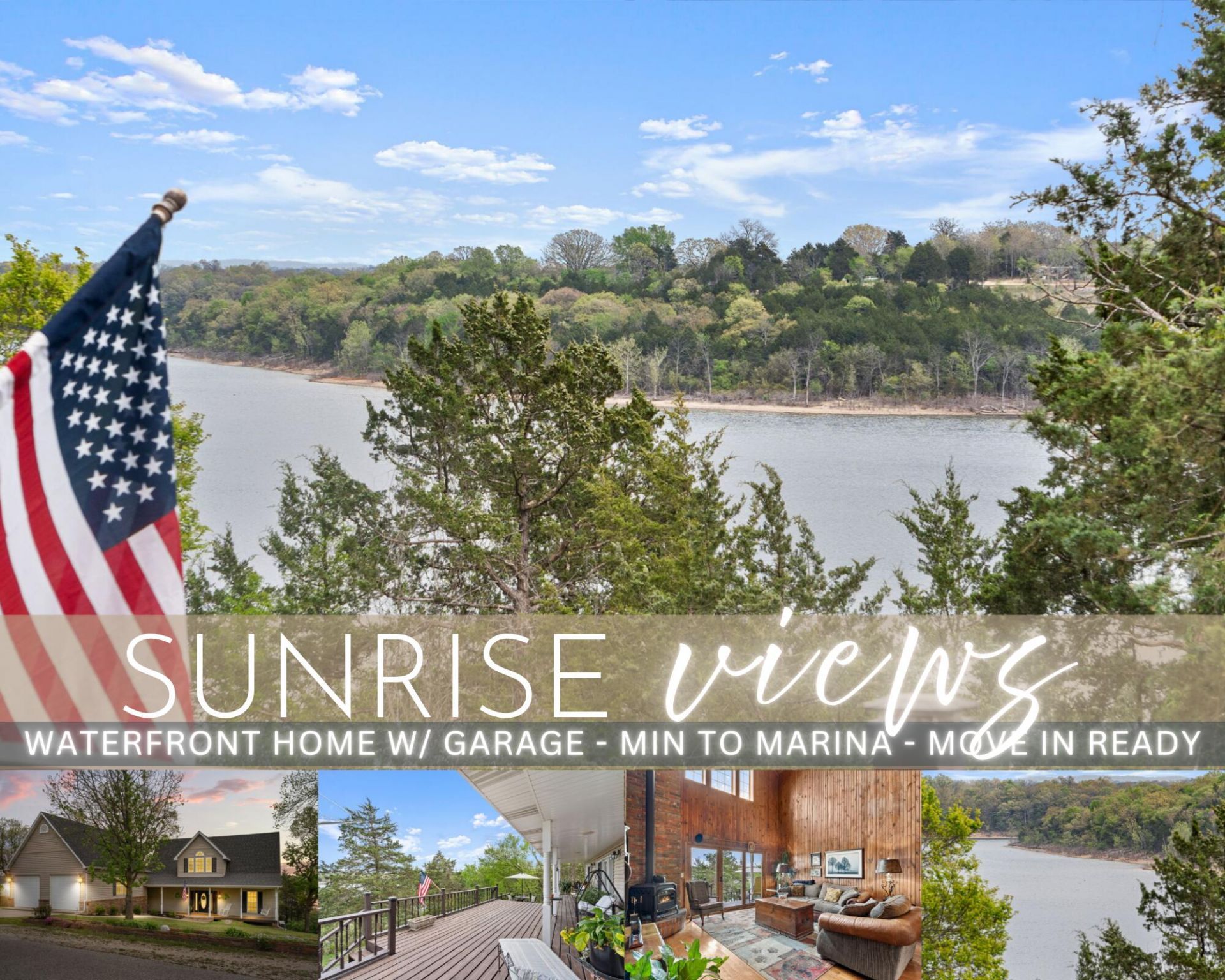 Sunrise views, waterfront serenity & lake life dialed all the way up-welcome to your front-row seat on crystal clear Table Rock Lake @27276 E Lakeview Ln in lake loving Eagle Rock.Wake each day to golden sunrises dancing across the water, cool lake breezes drifting through mature hardwoods & the soul soothing rhythm of gentle waves along the shore-occasionally interrupted by a fishing boat racing to its favorite hot spot. Perfectly positioned for the lake enthusiast, you're <5 min to Eagle Rock Marina for quick & easy access & endless days soaking up the sunshine on the water. Also approx 20 min to grocery stores, local spas, boutiques, eateries & all the daily conveniences in peaceful Eureka Springs.Back at your move-in ready retreat, enjoy thoughtful low-maintenance landscaping, mature shade trees & inviting covered front entry. Inside, jaw-dropping cathedral ceilings soar above main level living wrapped in timeless Ozark/BIG Cedar-esque tongue & groove wood finishes. A classic wood burning stove anchors the space-made for cozy holidays & crisp lake evenings.The home chef kitchen features stainless steel appliances, ample cabinetry/prep space, travertine tile backsplash, bar seating & formal dining-all set within a true ''window wonderland'' of lake views.Step outside to a wrap-around, multi-level covered & open deck system-your go-to for morning coffee as the sunrise glistens across the water or evening unwinds under the stars. Main level offers a spacious owner's suite w/ deck access & spa-like ensuite featuring both soaking tub & walk-in shower along with guest half bath & full laundry. Upstairs hosts 2 add bedrooms & full bath-perfect for family or lake guests.Extras include surround sound system, generator hookup & detached 2-car garage w/ breezeway-ideal for lake toys and more. Property is also located 5 mins away from new fire station and ambulance barn.Spring is blooming & your waterfront, sunrise views await @ 27276 E Lakeview Ln, Eagle Rock
