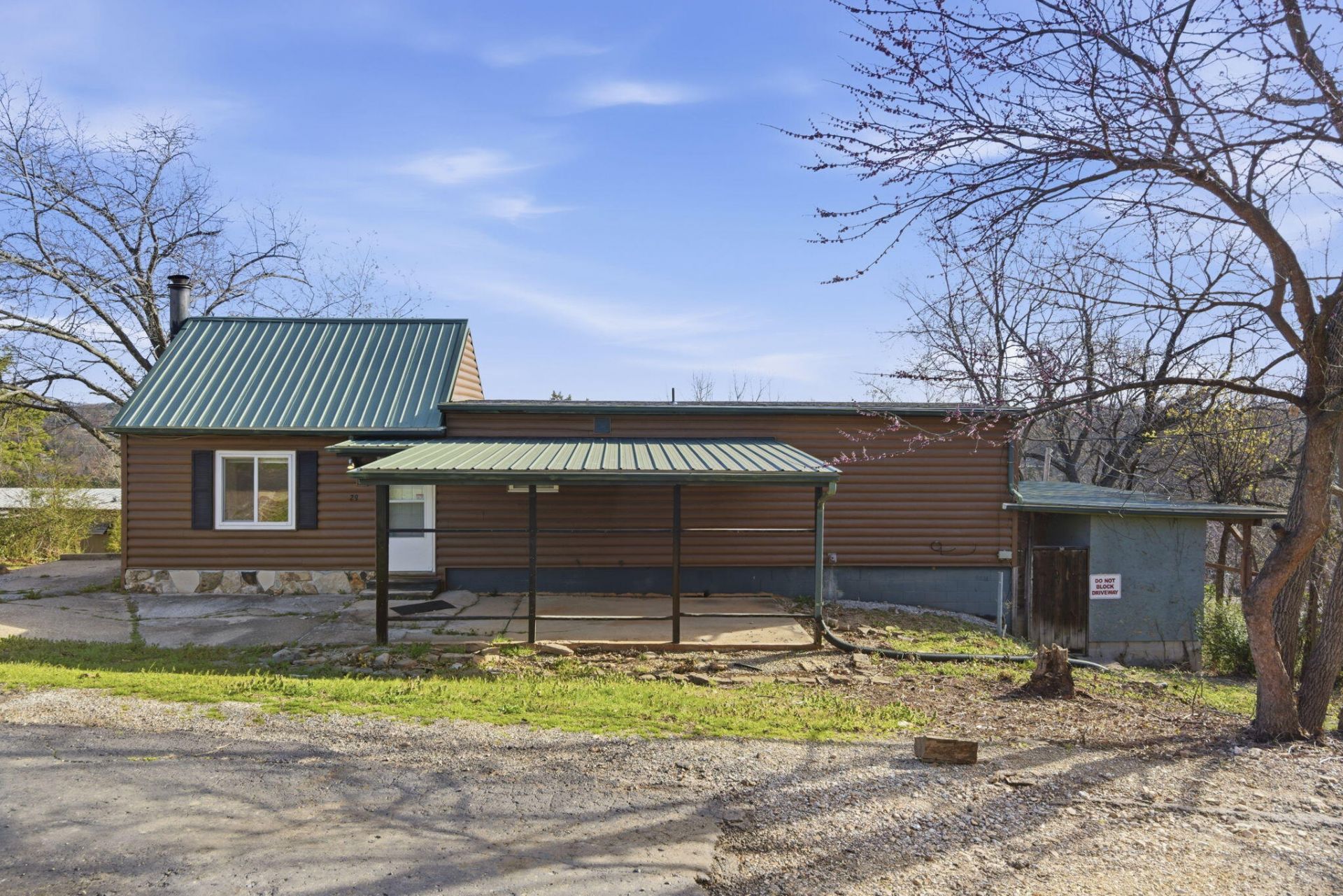 Enjoy affordable lake living with this Table Rock Lake view home in Blue Eye, Missouri, situated on 0.24 acres. This log cabin style home offers charm, functionality, and room to grow with a metal roof, covered parking, and additional potential. The updated main level features an open living area that flows seamlessly into the kitchen, creating a comfortable and inviting space. The kitchen includes gray cabinetry, stainless appliances, a tile backsplash, and a cozy seating area positioned by a picturesque window overlooking the lake. The main floor also includes a primary bedroom and a full bathroom with a jetted tub. Downstairs, the basement provides excellent flexibility with space for a second living area or guest quarters along with a second full bathroom featuring a walk in shower. Step outside to relax on the covered deck and take in the peaceful setting and lake views. With its combination of affordability, scenic surroundings, and versatile layout, this property is ideal for those seeking a lake retreat, full time residence, or investment opportunity near Table Rock Lake.