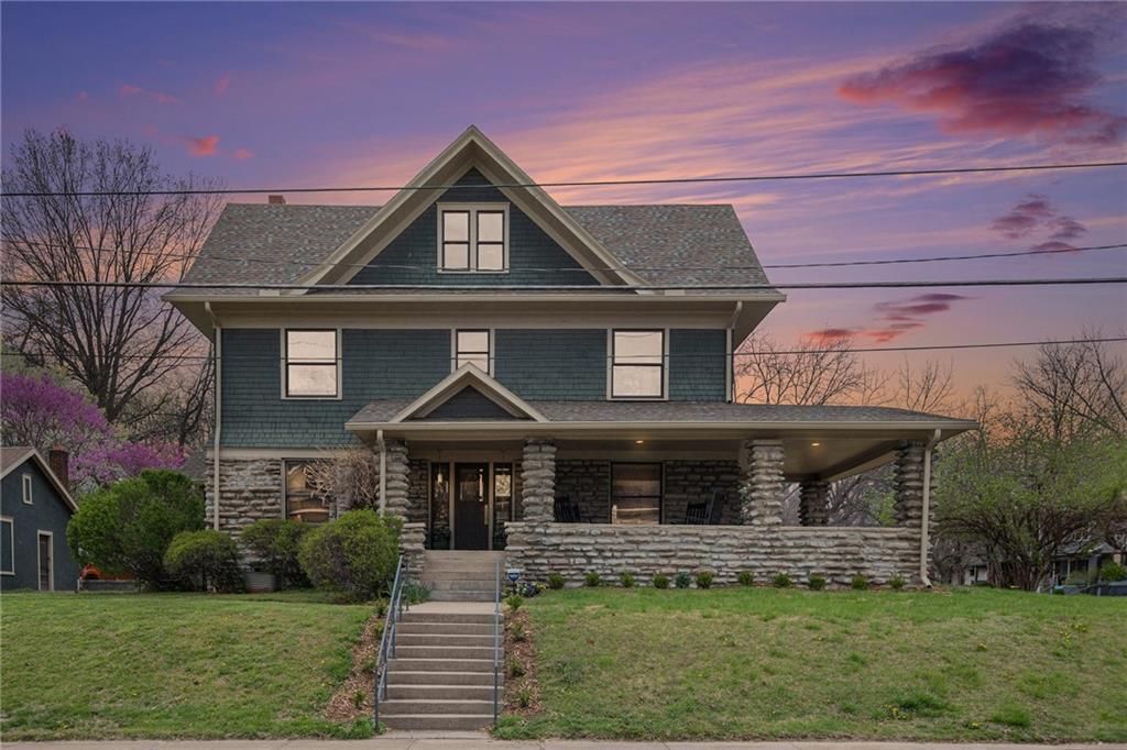 Exquisite 1908 Turn-of-the-Century Home ? Restored & Remodeled. Perched on a charming corner, thismeticulously restored 3-sty home blends historic grandeur with modern sophistication. Built in 1908, this home offersan extraordinary living experience with impeccable craftsmanship. From the moment you step ontothe ¾ wraparound porch, youll appreciate the homes stately presence. The original glass-etched front and side doorsset the tone for the artistry and tradition. A welcoming center hall entry leads to rich, dark oak hardwood floors that havebeen beautifully refinished. The stunning kitchent boasts an abundance of custom cabinetry, expansive counters, and asteel-based island that seats 4-6. The kitchens showstopping focal point is the 48-inch dual fuel double oven range,crowned by a 4-foot stainless steel hood. Set against a marble backsplash stretching from counter to ceiling. The mainlevel features a gracious living room, formal dining room, and a stylish powder room. The grand staircase showcasesexceptional woodwork, leading to the private quarters. The second floor, the luxurious primary suite offers a customwalk-in closet, a spa-like bath with a glass-enclosed walk-in shower, multifunctional showerheads, a soaking tub, anddual vanities. Two additional spacious bedrooms with generous closets and a beautifully designed hall bath complete thislevel. A large laundry room with original built-in cabinetry. The third floor offers two more bedrooms, including onecurrently used as an office, along with a bath featuring a double vanity and walk-in shower. The lower level provides anadditional living and recreation space. This versatile area includes a full bath, a walk-in shower, and double vanity. Aprivate drive, rare 3-car garage, and the incredible advantage of tax abatement through 2033 (2024 taxes were just$1,912), this home is a true gem. Located near Martini Corner, Crown Center, Downtown, Midtown, and the Plaza.
